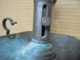 銅製の燭台2台です。大変優れものの燭台で、蝋燭筒の横に付いているネジで蝋燭が入る高さを調整可能です。筒自体もネジ込みで外れます。三角形の筒はかぶせて使う火消です。いずれも厚手で頑強な銅製で、経年の変化により、緑・黒サビ、ヨゴレ、スレありますが、機能的に問題ありません。組み立てて、高さ12㎝、横幅15.5㎝、奥行き14㎝、重さ530グラム程度あります。