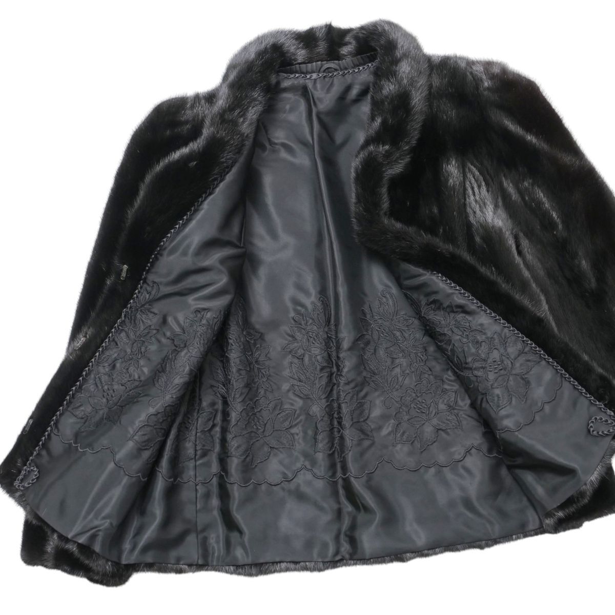 | GS4387◇逆毛ミンク ファージャケット ショート丈 毛皮コート ファーコート 裏:花柄刺繍 ブラック×ダークブラウン系 サイズ9 | |||