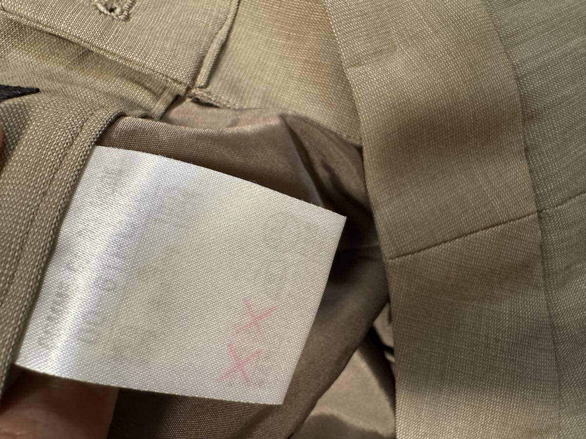 COMMECADUMODEコムサデモードのパンツです。薄い茶系ベージュのワイドパンツは、センタープレス仕様とさらっとした生地感が秋口にぴったりです。家族が所有しておりましたが、衣類の整理が必要となりましたためお譲り先を探しています。着用2回で汚れ・傷みはありませんが、USED自宅保管が気になる方はご遠慮ください。