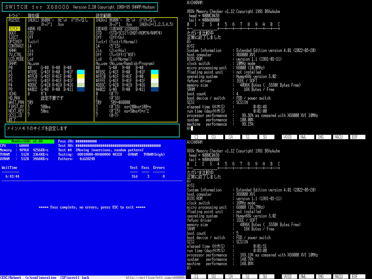※増設メモリはswitchコマンドで設定し、搭載しているメモリはMemtest68k等を使用し認識も含め動作確認済み。
