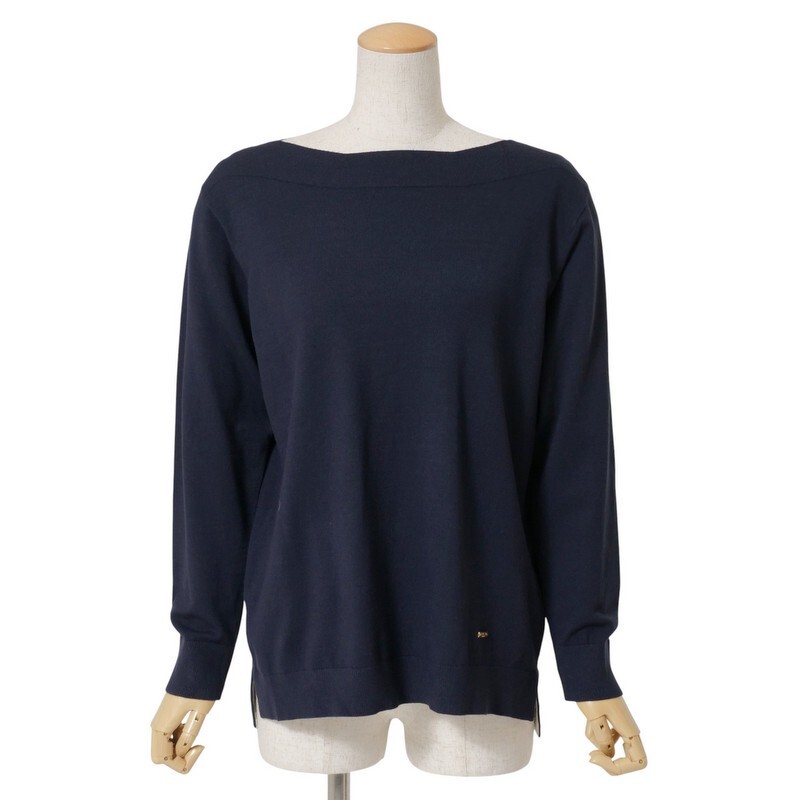 | TJ3544□未使用 エヴェックス バイ クリツィア/EVEX by KRIZIA ボートネック 長袖 セーター ニットプルオーバー レディース サイズ44 紺系 | |||