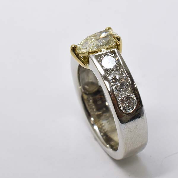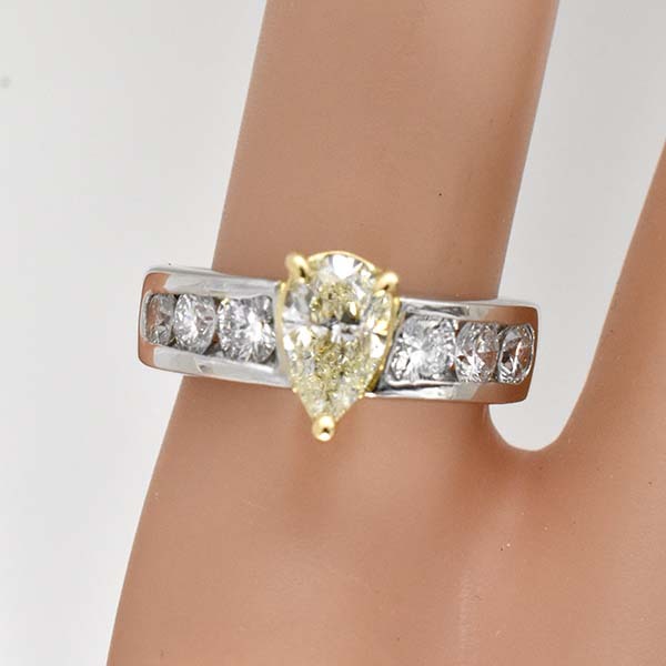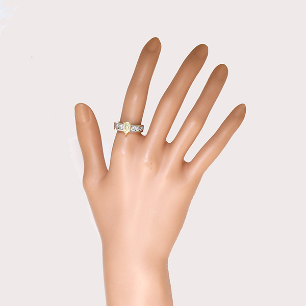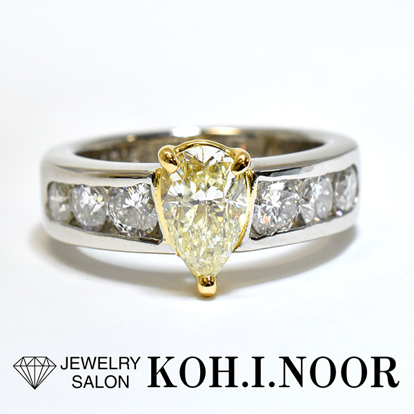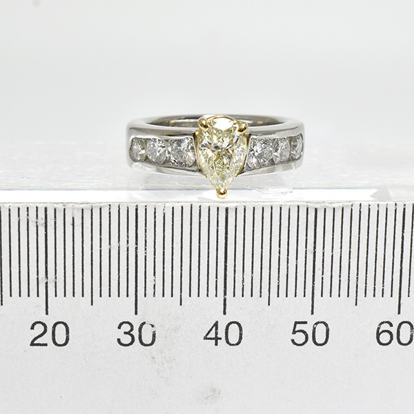 ベリーライトイエローのペアシェイプダイヤモンドをメインにしたプラチナ製のファッションリング。| 商品詳細 | |||||||||||||||||||||||||||||||||||||
