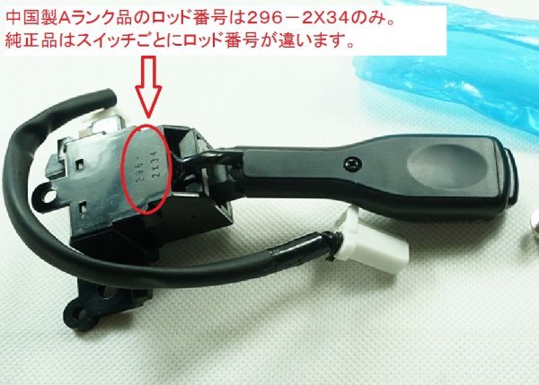 | 商品説明 | 80系エスクァイア、ヴォクシー、ノア用のクルーズコントロールキットになります。 上級グレードにしかない機能ですがこのキットを取り付けることにより上級グレードと同等の機能を手に入れることが可能です。 クルーズの動作ランプも問題なく点灯します(G’s、Xを除く) では偽物のクルコンが大量に出回っておりますが、当店で扱っている物はトヨタの純正部品(純正ラベル付)となっておりますので、安心して使用していただけると思います。 取付可能グレード ガソリン仕様 エスクァイア Xi ヴォクシー G’s ZS煌 ZS煌2 ZS X X“C Package” ノア G’s SI X X “Delight Plus” X“V Package” 2016年1月以降のセーフティーセンスC搭載車両にも取付出来ます。 商品構成 クルーズコントロールスイッチ、ハーネス、取付ネジ、ハンドルカバー、取付要領書(PDF、オリジナルハーネス購入者のみ)になります 画像のイルミ付きクルーズコントロールはプラス4400円です このスイッチはポン付けしても動作しないため、専用のハーネスが付属しております。 クルーズコントロールを動作させるにはスイッチセットの他にオリジナルハーネスが必要になります オリジナルハーネス 寒冷地仕様有り車 1500円 寒冷地仕様無し車 2500円 ハーネス保護仕様は400円アップです 保護仕様は走行中の振動によるスレにも強い仕様になっております オリジナルハーネスは純正オプション品の様な本格的な作りとなっておりますので安物とは全くの別物でございます。 みんカラ等でも高評価を頂いております 長期間安心して使用していただけると思います ※エスクァイアは寒冷地仕様車でも2500円のハーネスが必要になります。 ※ノア、ヴォクシーのXグレードは寒冷地仕様車でも2500円のハーネスが必要になります トヨタ純正クルーズコントロールと中国製クルーズコントロールの違いについて 現在、で売られているクルーズスイッチはトヨタ純正品、中国製Aランク、中国製Bランク、中国製Cランクが存在します。 トヨタ純正品は品質、性能共に言うことはありませんが中国製の商品については、 最初は動作するが、数週間、数ヶ月で動作しなくなると言う報告を受けております。 現在確認が出来ている中国製には純正品に比べて、見た目のそっくりなAランク品、見た目が若干違うBランク品、見た目があきらかに違うCランク品が存在します。 Aランク品の特徴は、純正品に付いている青い保護ビニール、東海理化のロゴマークであるRの刻印、ロット番号が付いており、見た目も非常にそっくりな為見極めるのが困難です。 Bランク品の特徴は、ぱっと見は純正品に見えますがRの刻印とロット番号がありません。青い保護ビニールは付いています。 Cランク品の特徴はクルーズのマークが純正品とは形状が違います。 カプラー差し込み口の色もあきらかに違うので一目瞭然です。 スイッチを押した感覚にも違いがあり純正品はカチッと言う感覚がありますが中国製はスカスカした感じです。 肝心なスイッチ内部の構造ですが分解してみると明らかに違いがあり、接点部など非常に安っぽい感じを受けるのが印象です。 今回、純正品と中国製を画像にて比較をしましたのでご覧ください。 純正品のロッド番号はスイッチごとに全て違います。 ![]() Aランク品は全て296-2X34ばかりです。 純正品はランダムな数字の刻印がありますがAランク品は5ばかりです。 こちらは純正品です。数字がランダムであることが分かります 中国製Cランク品との比較です。形状が違います。中国製AランクBランク品は純正と形状が似ています。 純正品と中国製の形状比較です。中国製には画像の赤丸の箇所に突起物がありますが、純正品には突起物がありません。 純正品と中国製の違いを分かって頂けたでしょうか? 外見は同じでも中身が全く違うことを分かって頂けたと思います 現在では、トヨタ純正品と記載し、中国製を販売している出品者が存在します その方々の商品内容物で純正品はカバーだけと思われます。スイッチとハーネスは中国製です 見分け方は簡単です。純正品ですか?と質問をしてみてください。 恐らく回答が無いと思われます。 当店で販売している物は、トヨタ純正のシールが付いているので、正真正銘のトヨタ純正部品です。 騙されないように十分注意してください 製品保証について この商品はトヨタ純正部品を使用しておりますが補給部品のため保証がありません 当店独自で落札から1年間保証をお付けします 万が一スイッチが故障した場合は新品と交換させて頂きます 落札者様からの商品レビュー 評価: 非常に良い 出品者です。 評価者: fbwqei1248(15) この度は迅速丁寧な対応ありがとうございました。 他の安価な中華製を買わされ※越○美○と某大 阪のショップ で無駄金を使いました。 最初から出品者様の商品を購入していれば良かったです。 親身に対応していただきまして感謝しております。ありがとうございました! 評価: 非常に良い 非常に良い 出