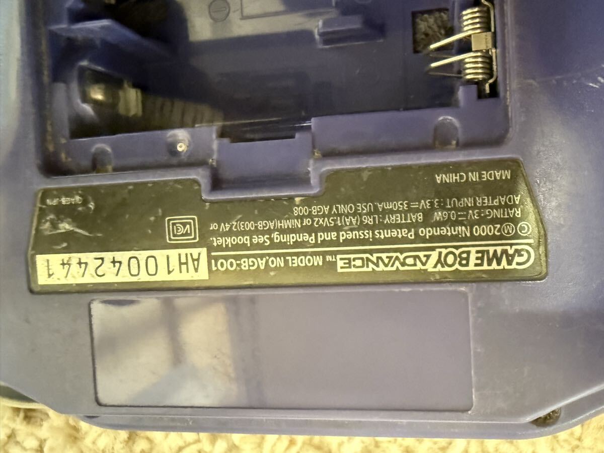 ①【b1863】 Nintendo GBA AGB-001 本体+充電器+バッテリーパック ジャンク