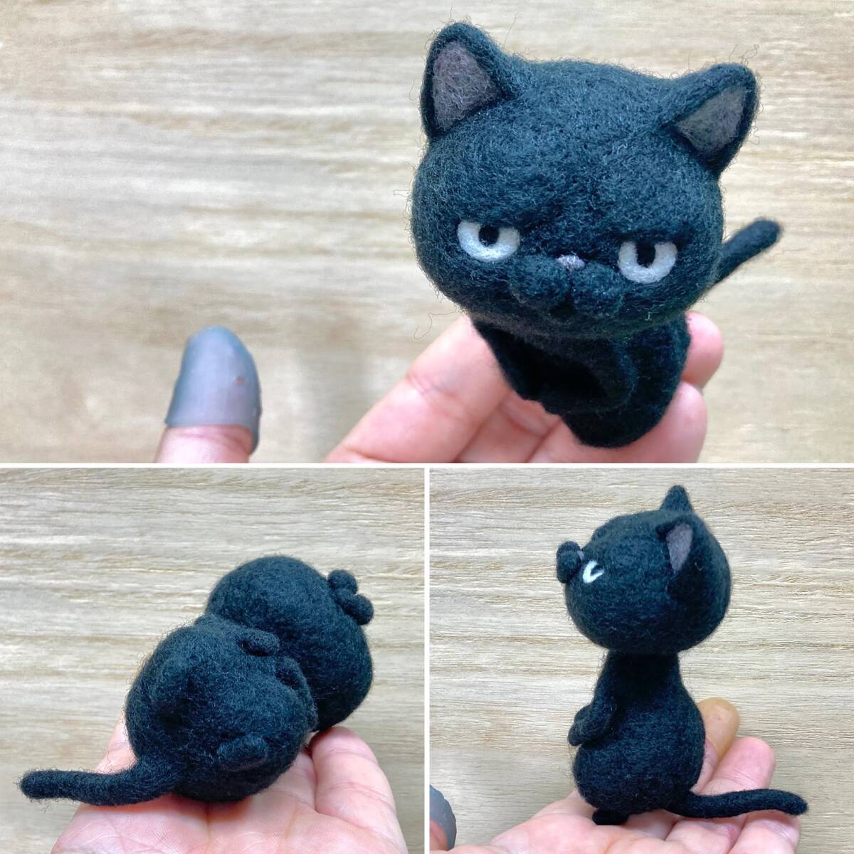 I handcrafted this black cat sitting in a strange pose with needle-felted.