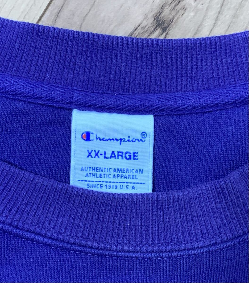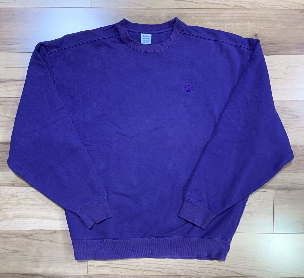 ■ レア 90s〜00s〜? CHAMPION チャンピオン スウェット トレーナー 胸袖 目有り XXL 無地 刺繍タグ 青紫 ■ パープル [浏览原始页面]