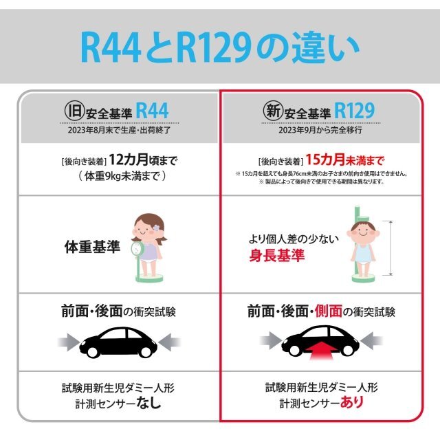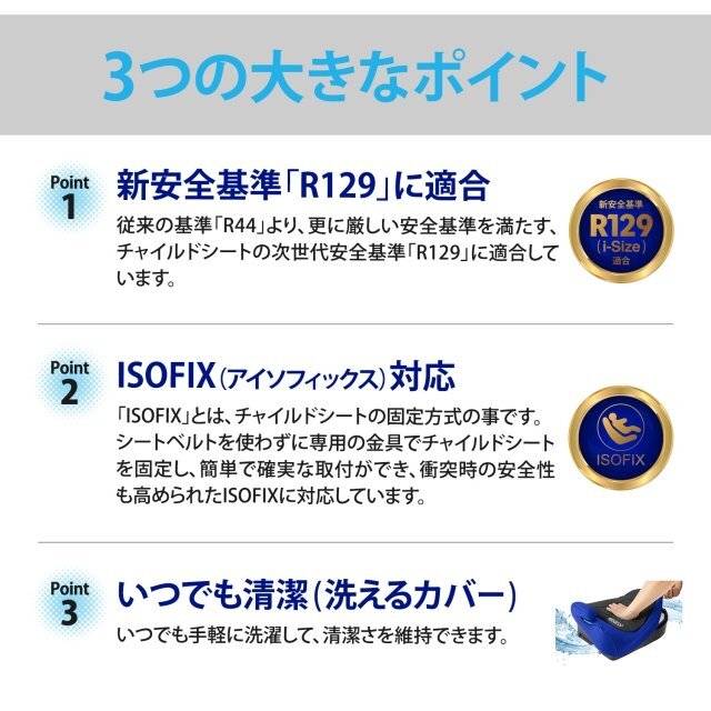 身長が125cm~150cm、体重が22kg~36kgの子供たちを想定して設計されています。ISOFIXコネクターが付いており、認証はECE R129規格に準拠しています。