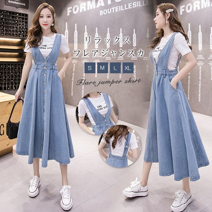 デニム サロペットワンピース レディース ゆったり デニムサロペットスカート デニムスカート デニム ワンピース ★Sサイズ
