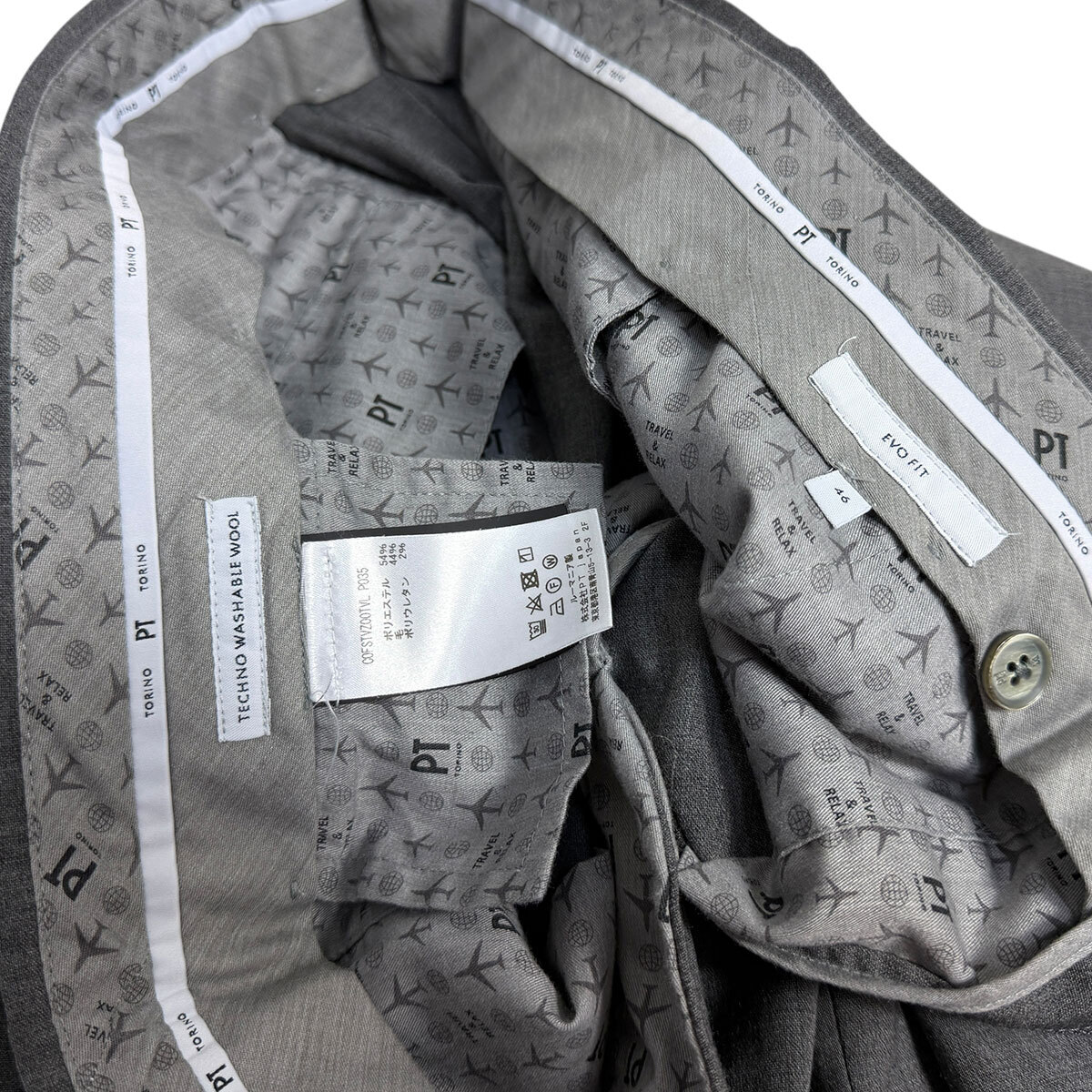 PT TORINO EVO FIT TRAVEL&RELAX トラベラーテクノウォッシャブルウール ノープリーツスラックス グレー 46 美品(Aランク)【サイズ】ウェスト41.5cm/渡り幅32cm/股上24.5cm/股下77.5cm/裾幅17cm/ダブル幅4cm/裾ヘム幅3.5cm/ウェスト縫い代5cm【状態】美品(Aランク)【カラー】グレー【素材】画像参照【購入先】AACD加盟リユースショップにて購入【ポイント】EVO FITのトラベラーライン。ウォッシャブルウールで自宅洗濯可能、ノープリーツでシャープな印象のスラックスです。ビジネスからカジュアルまで幅広く活躍する一着。