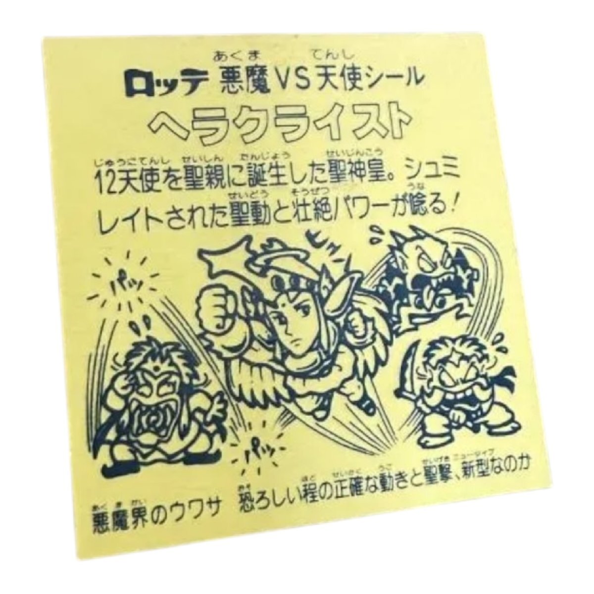 ロッテ「ビックリマン」旧シリーズより、「悪魔VS天使シール」の代表的天使ヘッド「ヘラクライスト」です。