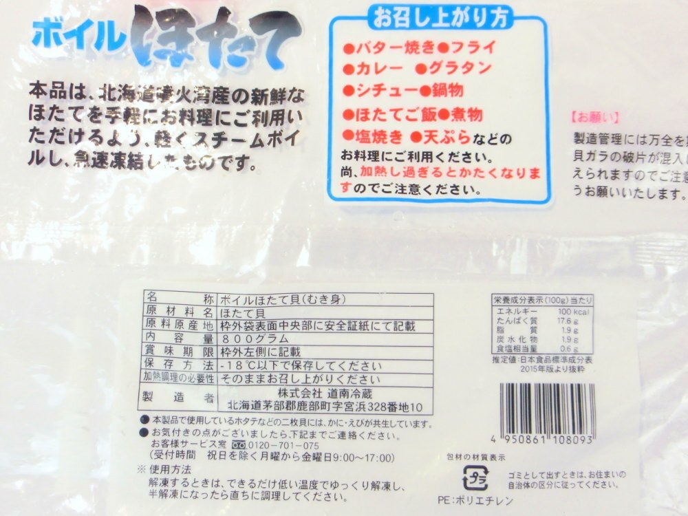 北海道で獲れた新鮮なほたてを使用した国産品です。