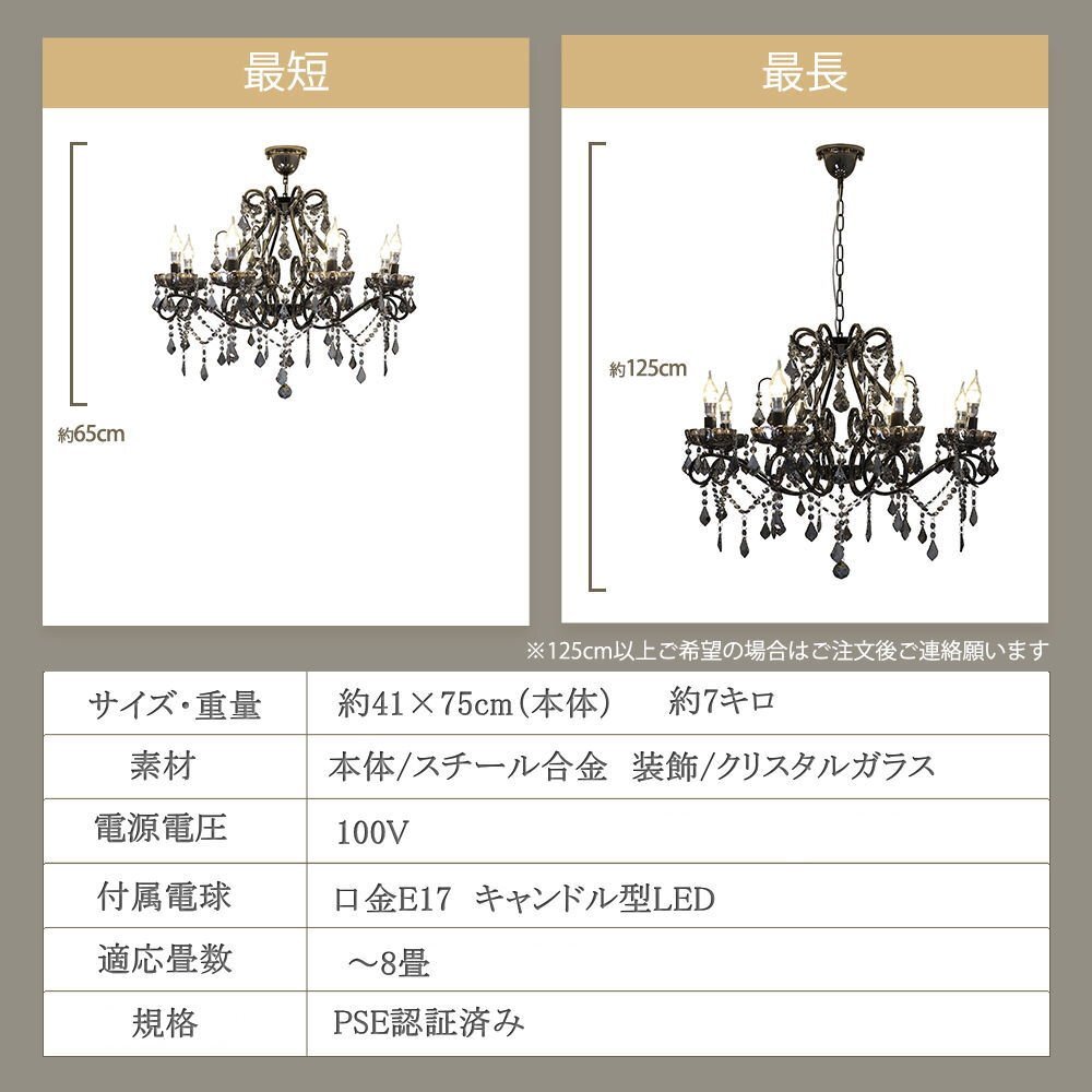 | 商品説明 | ![]() ☆LED電球サービスキャンペーン開催中!☆【送料無料!】★超激安即決!★新品 キャンドル8灯クリスタルシャンデリア♪ ●キャンペーン期間中 広角LED電球8灯(¥9600-相当)お付けいたしまして驚きのプライス! ☆LED電球サービスキャンペーン開催中!☆ ※通常電球別売の為、価格記載の電球画像掲載がございますがキャンペーン期間中は無償提供(調光別途¥200-)させて頂いております※ ☆上質水晶ならではの最高の輝きを放つ新品クリスタルシャンデリア ☆添付画像では肉眼で見る本来のクリスタルの輝きをご確認いただけませんが、8灯の電球が上質クリスタル水晶を通し光の屈折で光の持つ本来のカラーをかもし出しダイヤモンドのように輝きながらワット数以上の明るさでお部屋を照らします ☆スタイルは飽きの来ないシンプルなデザインです♪ ☆とても明るくおしゃれなシャンデリアです ☆シャンデリア本体は調光にも対応しており、お好みの明るさに調整可能です ※調光が必要の場合、調光対応LED1個別途¥200-と汎用調光器が必要です ☆付属電球・・・口金E17広角LED暖色6灯(明るさ40ワット消費電力4ワット 暖色36Lm/W・白色40Lm/W) ※調光対応LED1個別途¥200- ※白色LEDご希望の場合はご注文後お申し付けください 商品画像は暖色LEDを装着し撮影しております ☆取り付けに関しましてはワンタッチでは御座いませんが(配線はワンタッチ)引掛けシーリングに対応しております ☆リビング等に最適なゴージャスクリスタルシャンデリアを是非この機会に! ☆サイズ・高さ(天井よりシャンデリア本体底辺)約55~125cm調整可能 直径約75cm 重量約7キロです ※125センチ以上必要の場合はご注文後お申し付けください ![]() |