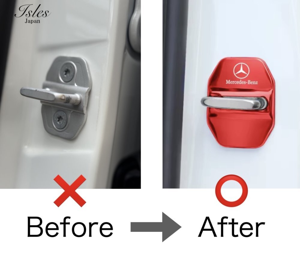 「商品情報」「主な仕様」【対応車種】:メルセデスベンツほぼ全車種通用 (Rクラスなど一部のお車には適合しない場合がございます。実車のドアロック部分の形状をご確認いただいてからご購入いただけますと幸いです)【パッケージ】:ドアロック カバー4pcs【ブランド】ISLES JAPAN社外品 メルセデスベンツ ドアロックカバー・カラー:レッド・貼るだけ簡単取り付け