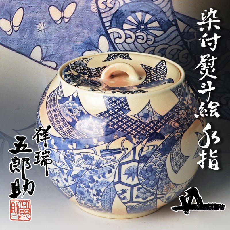 | 【古美味】六代浅見五郎助『鵬雲斎書付』染付熨斗絵水指 茶道具 保証品 |