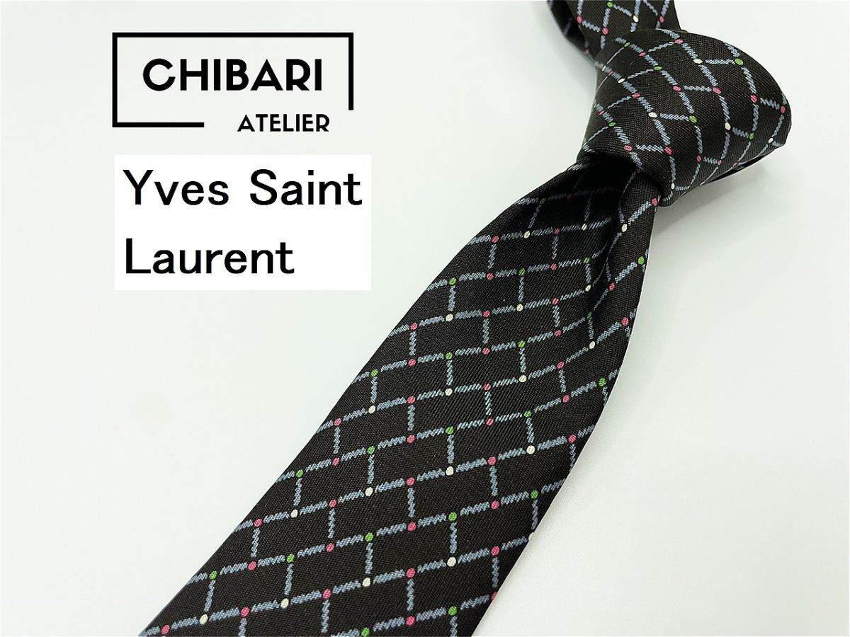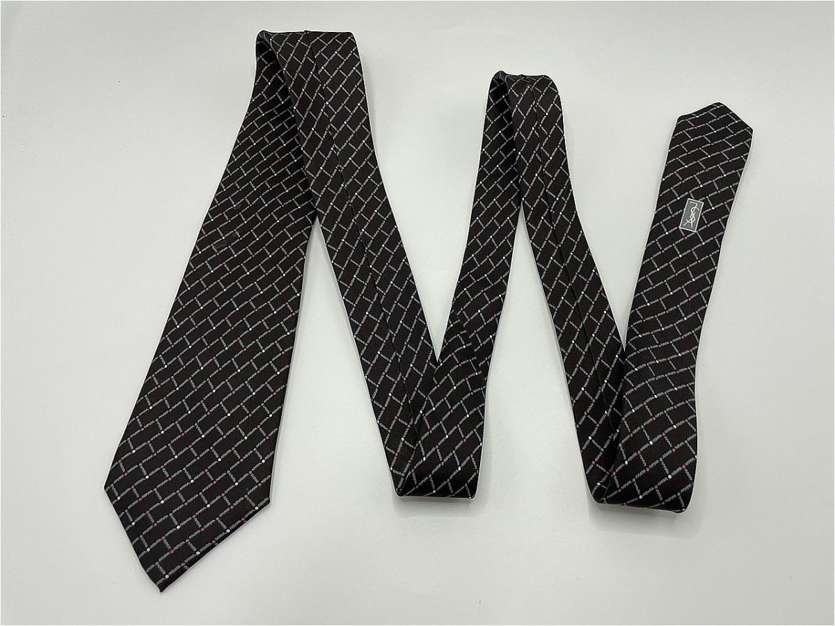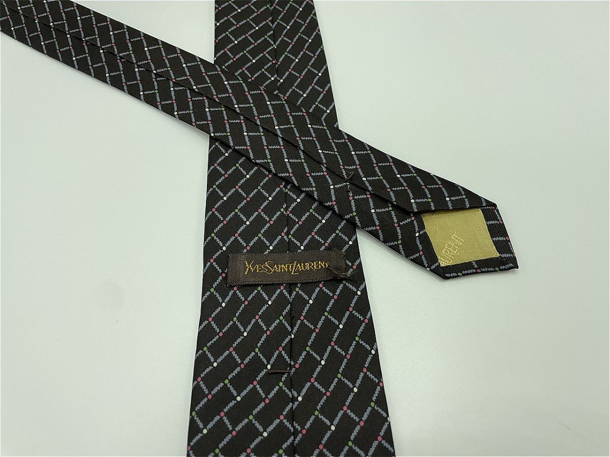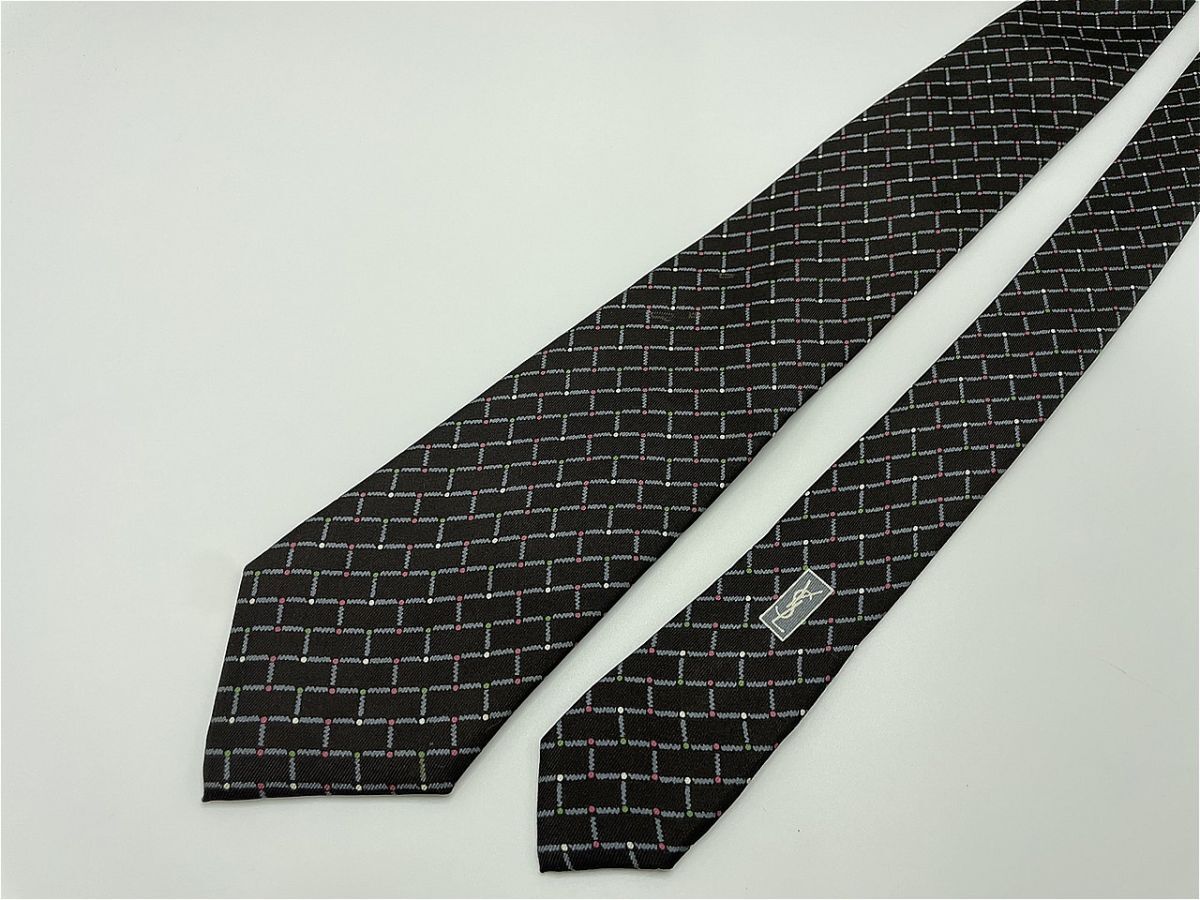 【超美品】YvesSaintLaurent サンローラン チェック柄 ネクタイ 3本以上 送料無料 メンズ ブラウン系 1003171