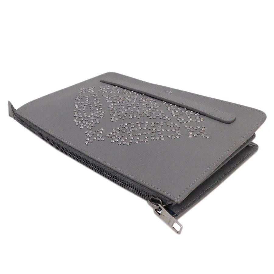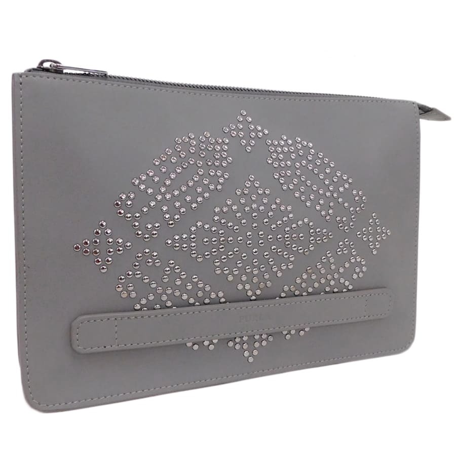 1円■極美品/フルラ/クラッチバッグ/グレー系/レザー/スタッズ/おでかけ/普段使い/レディース/FURLA ■E.Bmu.An-13[中古]