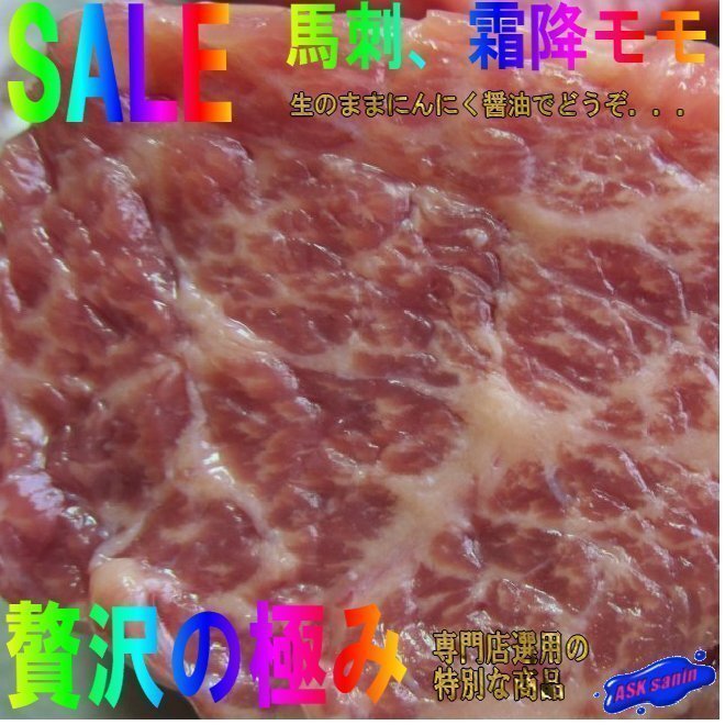 天然霜降馬刺しです。脂肪注入加工による霜降り肉ではありません。
