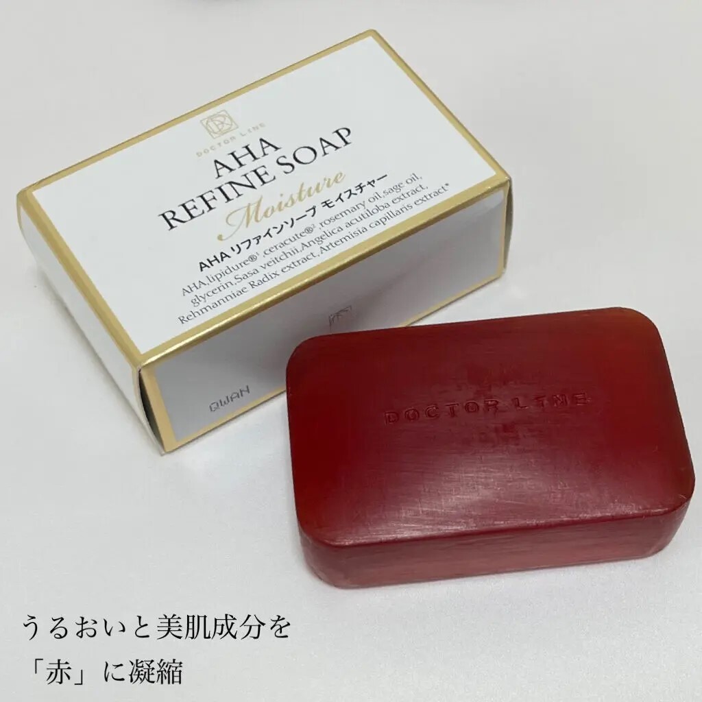 | 【今なら数量限定おまけ付き】ドクターラインオリジナルの泡立てネットをおまけで付けております。 【正規品・新品】メーカーより直接入荷した正規品になりますので、安心してご購入ください。全商品、新品未使用品未開封商品になります。 ※その他、様々なドクターラインの石鹸や化粧水、美容液、乳液を販売中です。その他の出品商品より、ご確認くださいませ。 AHAリファインソープモイスチャー(100g) メーカー希望小売価格:3,630円(税込) 美容皮膚科の美容皮膚理論から推奨する「DOCTOR LINE」 リピジュア(R)・セラキュート(R)・シルクエキス、角質を柔軟にするAHA(フルーツ酸)など20種類以上の美容成分を配合した枠練り石けんです。 潤いを凝縮した濃密な泡で優しく洗い上げます。敏感肌・乾燥肌などの方も使えます。 極限まで高級美肌成分をたっぷりと注ぎ込んだ大人の石鹸。 キメ細かい泡と、たっぷりの保湿成分で洗い上げるので、摩擦によるダメージも軽減されます。 ▼角質柔軟処方 フルーツ酸が不要な角質をゆるめ、美肌にかかせない肌サイクルを整えます。 ▼弾力泡処方 素早く泡立つ泡が汚れを吸着。クッション効果で肌をいたわり洗い上げます。 ▼高保湿処方 保湿成分「リピジュア」「セラキュート」「シルクエキス」を配合。 ※パラベン・合成香料・合成着色料・TEA・界面活性剤・旧指定成分無配合 商品サイズ (幅×奥行×高さ) :87mm×33mm×53mm 原産国:日本 内容量:100g | |