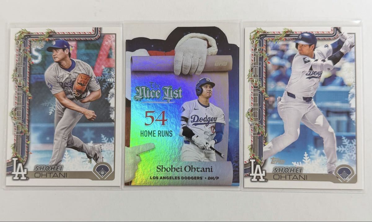最新 大谷翔平 2025 Topps Holiday Baseball Shohei Ohtani Base H1 H200 Insert Making the Nice List MNL-1 Dodgers MLB 3枚