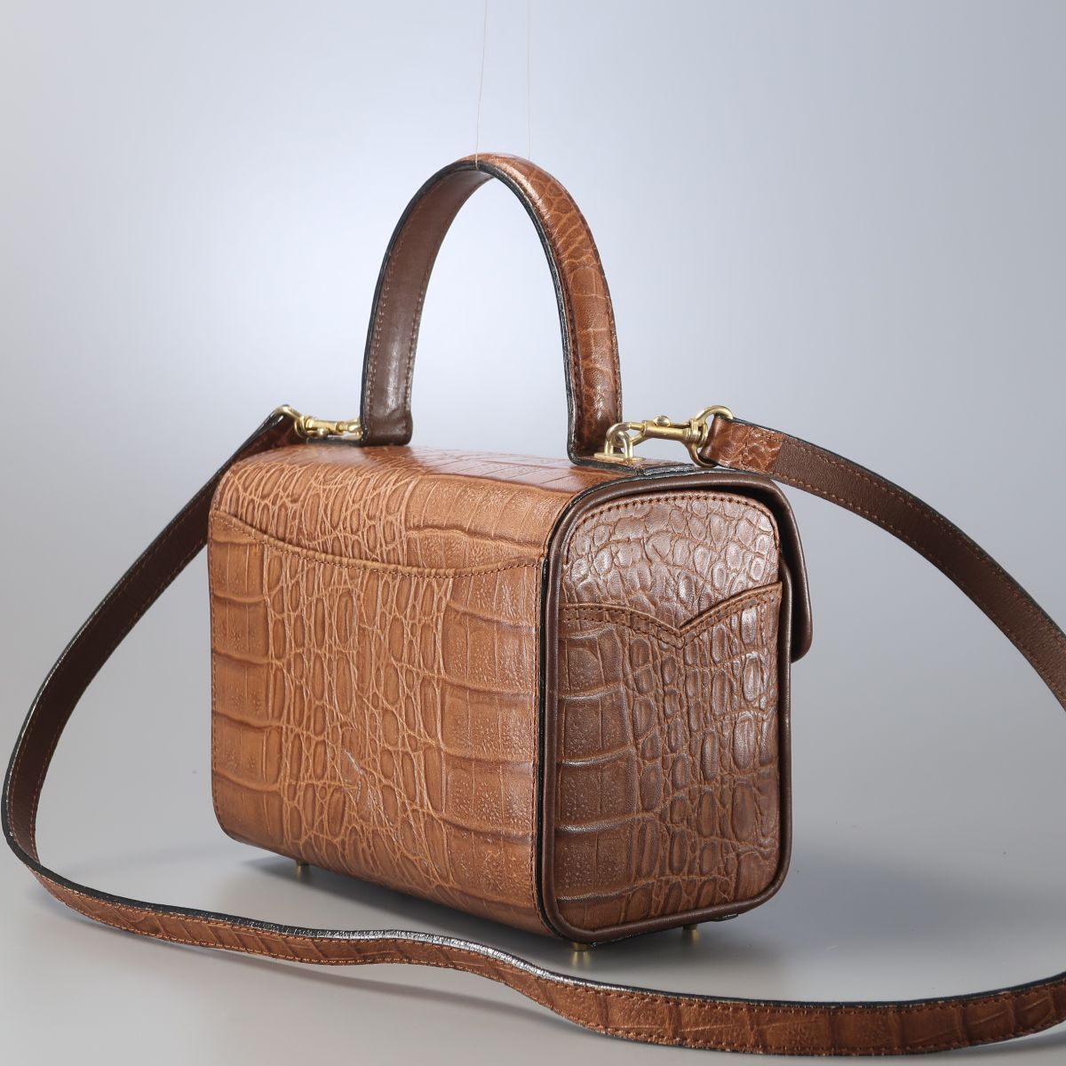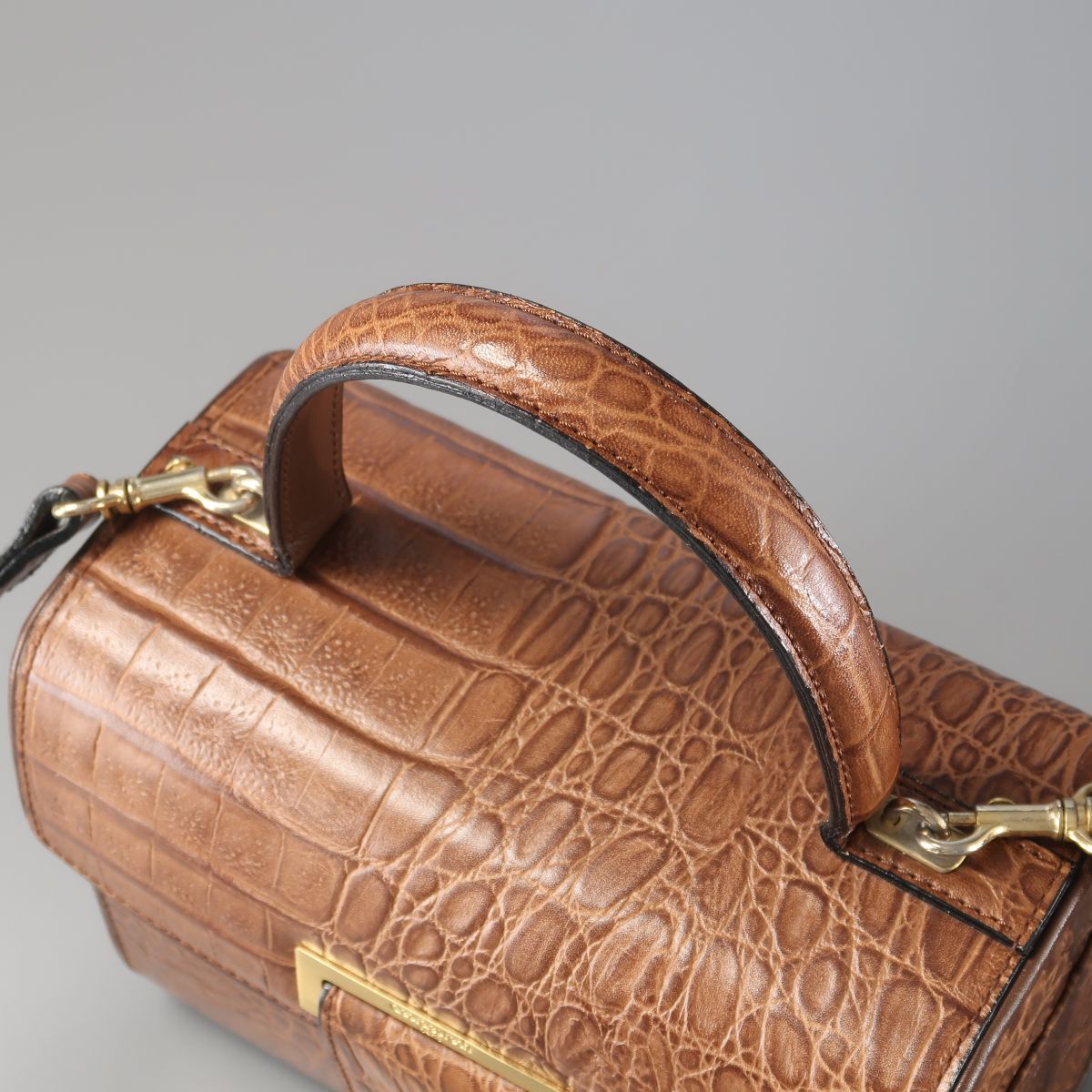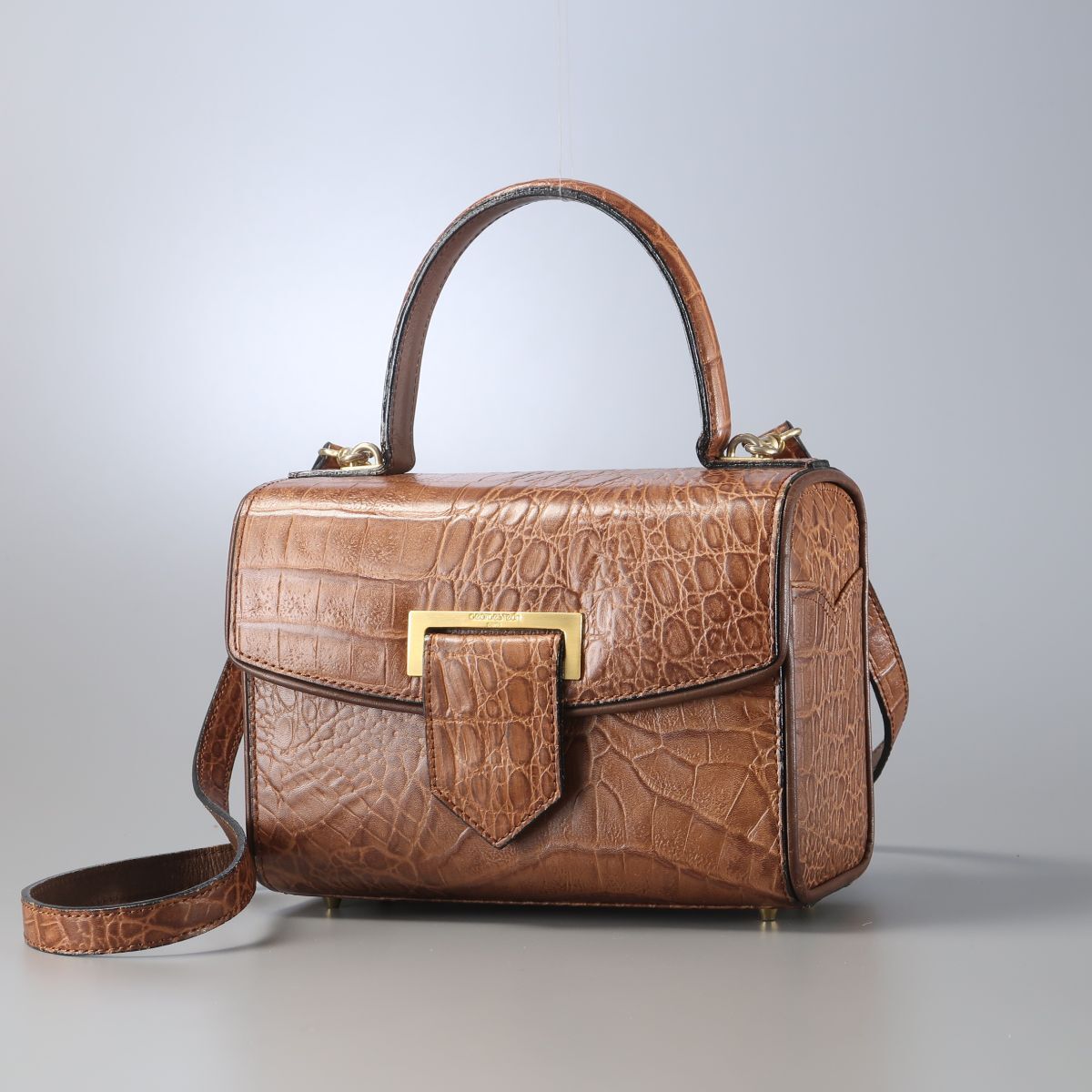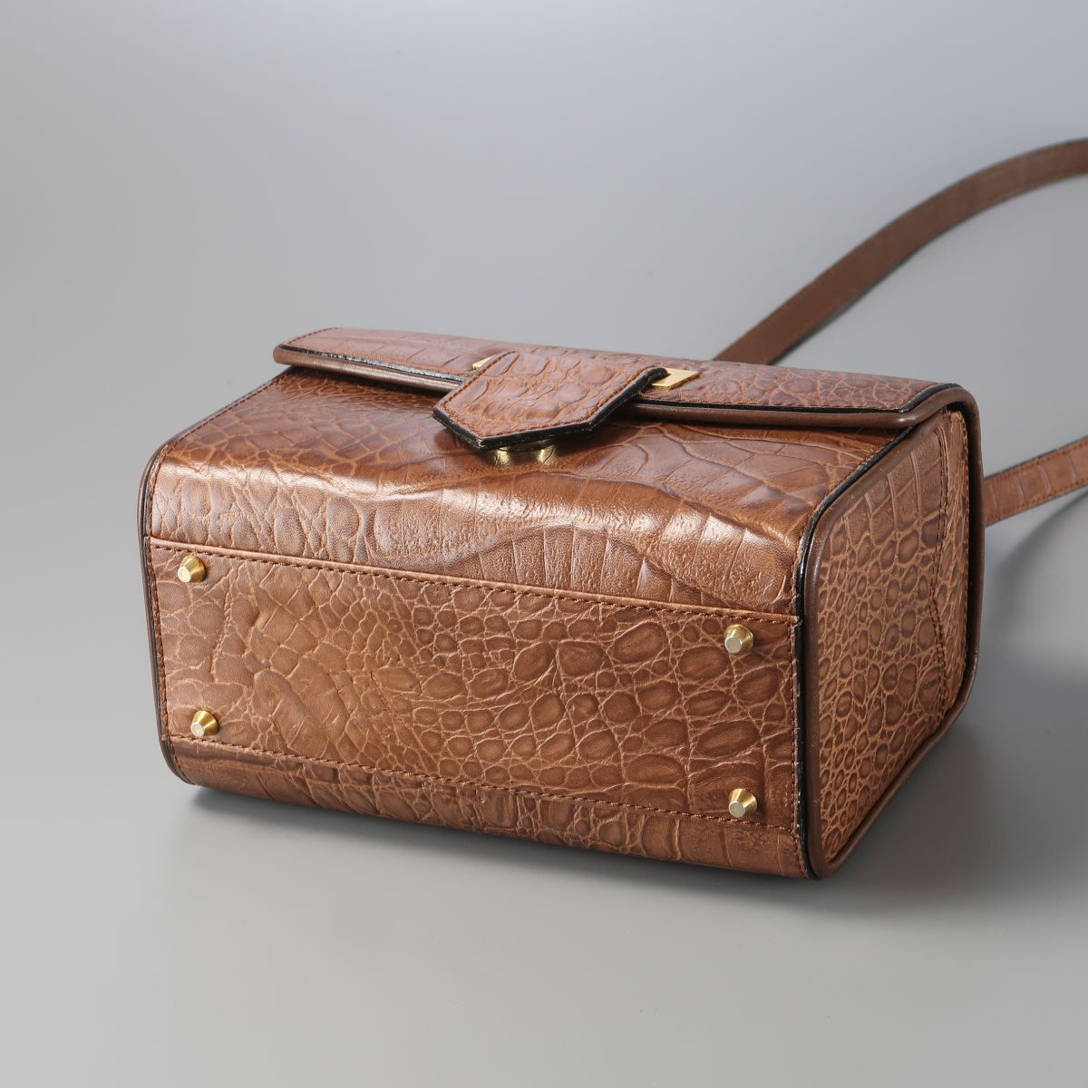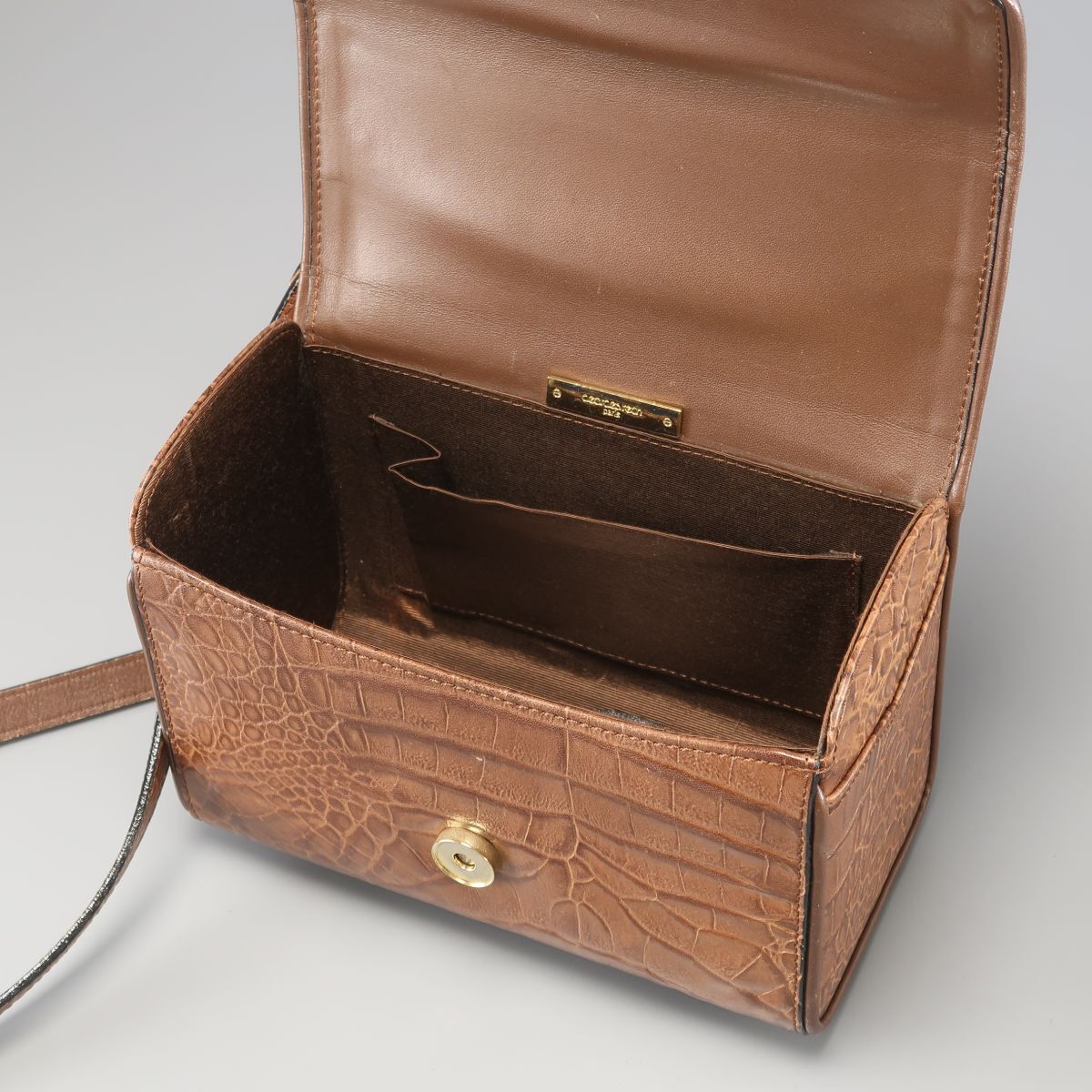 | GS5609▲georges rech ジョルジュ レッシュ クロコ型押しレザー 本革 2way ハンドバッグ ショルダーバッグ フラップ トップハンドル 鞄 茶 | |||