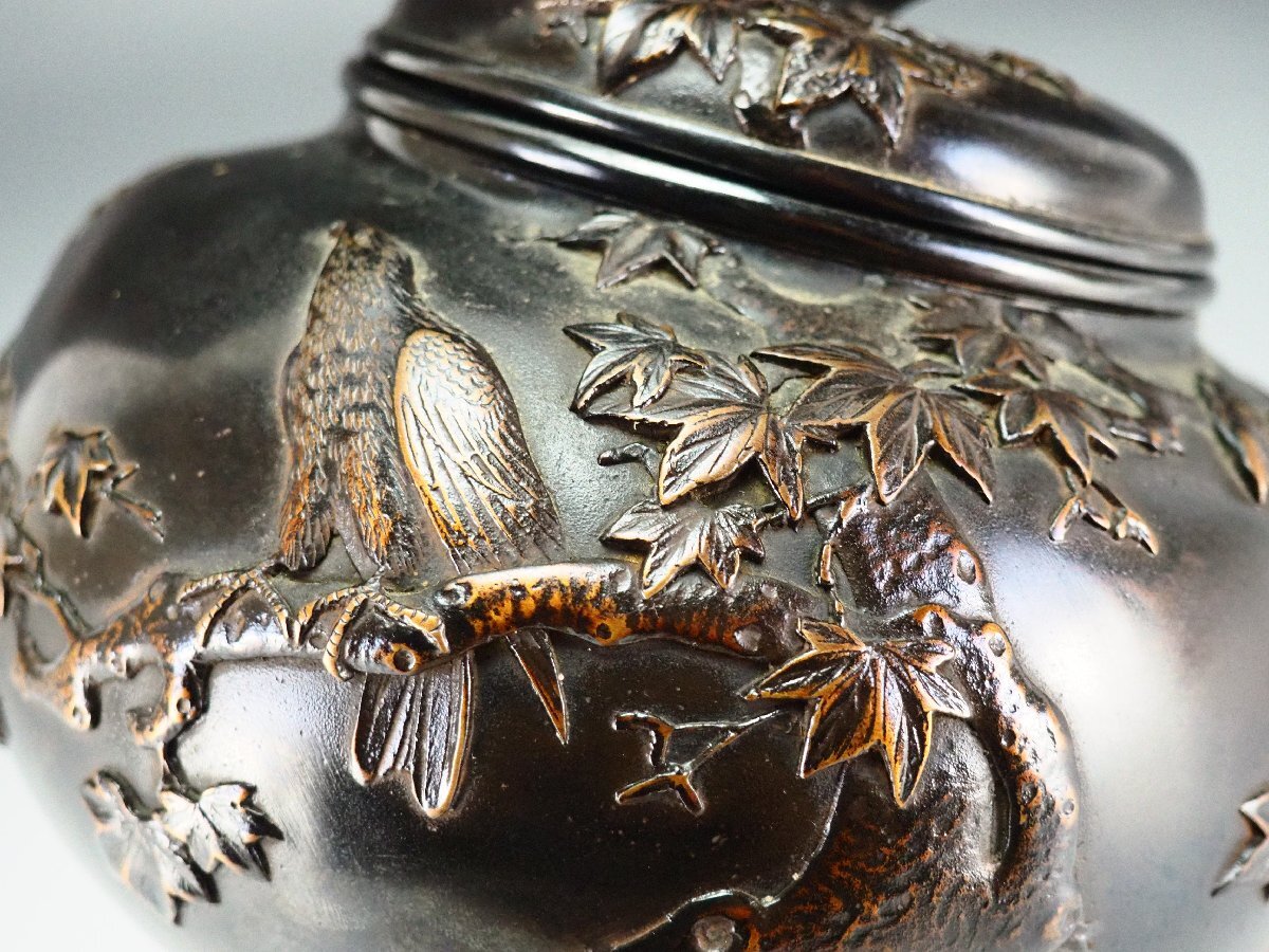 | 《サイズ》 大きさは 幅 15.2cm ・ 高さ 14.3cm ・ 重さ 2235g 【※計測サイズは最大径で計測しております(例;茶釜であれば、幅は鐶付の先から鐶付の先まで、高さは底面から摘みの先までとなります】 | |||