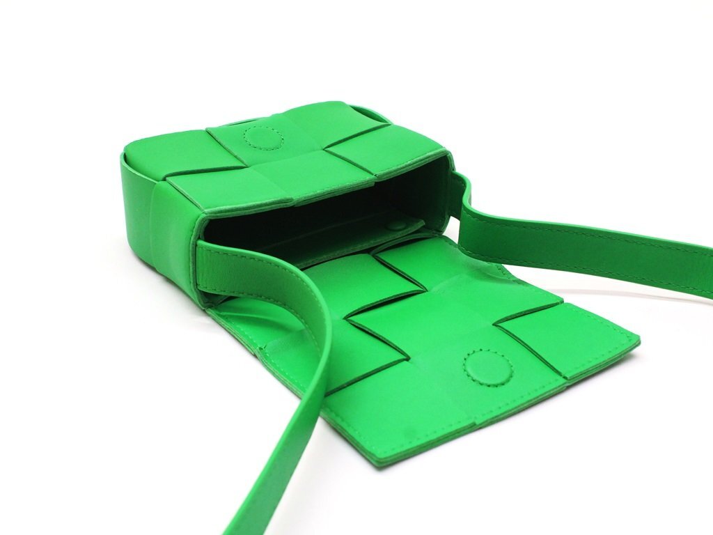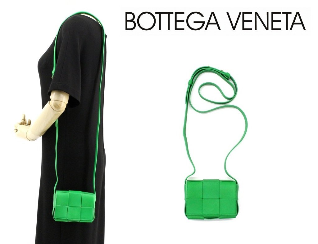 18万新品◆ボッテガヴェネタ◆イタリア製 マキシイントレチャート ミニクロスボディバッグ『CANDY CASSETTE』PARAKEET 緑