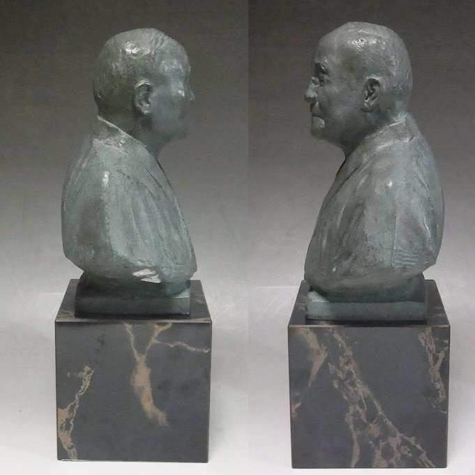 | 斉藤商店★真作 建畠覚造 吉田茂 ブロンズ 胸像 31.5cm 3.4kg 桐箱★ |