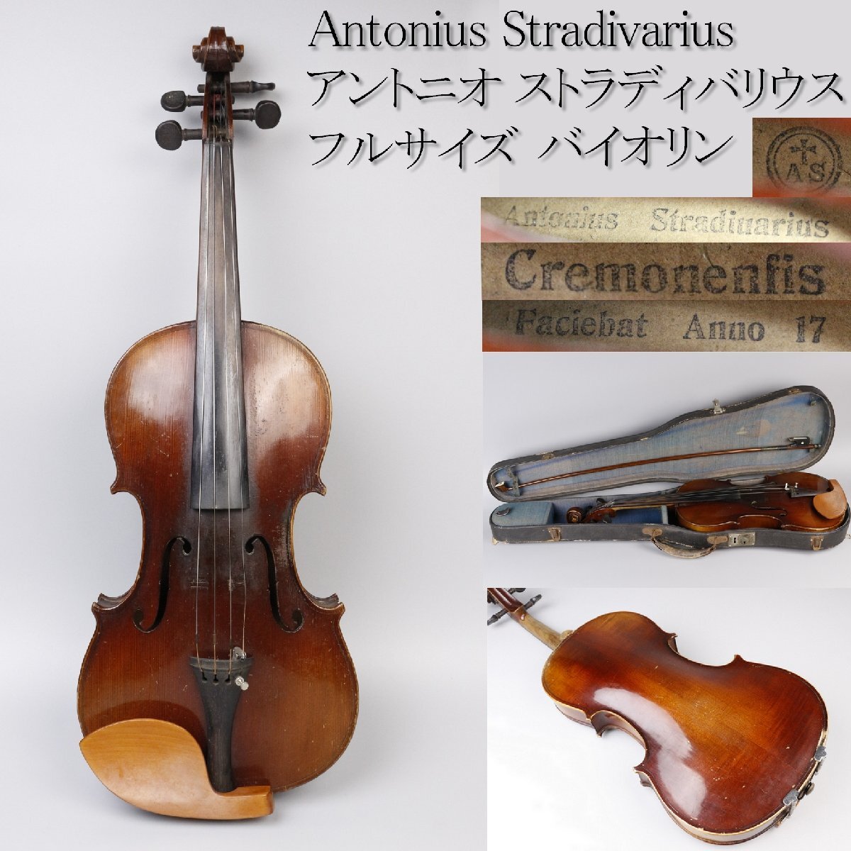 [.QP]25.11 25110418* * * 商品詳細 * * * ここでしか出逢うことのできない唯一の美をご紹介させて頂きます。 Antonius Stradivariusの銘の入った フルサイズ バイオリンのご紹介です。 17-18世紀に製造されたイタリアのAntonius Stradivariusは、 卓越した音色と希少性から世界最高峰の弦楽器とされ、 「世界三大バイオリン」の一つに数えられています。 経年を経た肌地に艶やかな質感、華やかな存在感のある逸品を この機会にお手元にてご堪能ください。 ■商品内容/バイオリン、弓、ケース ※写真にあるものが全てです。 ■サイズ/全長60㎝ 胴長35㎝ 幅21㎝ 弦長32㎝ 弓全長74.5㎝ ケース:横78㎝×高11.5㎝×奥行23㎝ ■状態/スレ、傷、欠け、剥げ、錆び、経年の傷み、弓にパーツ欠損、 ケースにスレ、傷、剥げ、破れ、錆び、経年の傷みがございます。 ※写真にてご確認、ご了承の上ご入札下さい。 ![]() ![]() * * * 支払詳細 * * * !かんたん決済 * * * 発送詳細 * * * 入金確認後3営業日以内に発送致します。 ※直接引き取りも可能です。 60~160サイズにつきましては 佐川急便、ゆうパックのどちらかで発送いたします。 ゆうパック発送の場合、弊社の発送日から追跡サービスに問合せ番号が反映されるまで 約1日ほどお時間がかかりますのでご了承下さい。 * * * 注意事項 * * * 運送中の破損があった場合は速やかに当社までご連絡下さい。 保険を利用するのに受取連絡後に運送会社による現場での破損状況確認が必要となります。 勝手に返送されますと保険の適用外となりますのでご注意ください。 * * * * * * お問い合わせ:082-236-8669 |