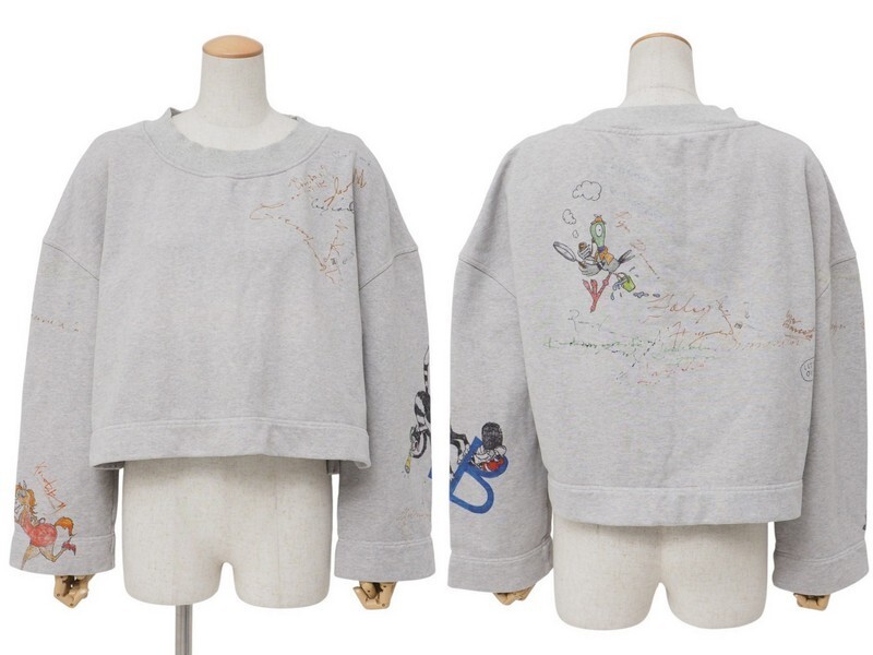 | TJ6352★イタリア製 BURBERRY バーバリー グラフィックデザイン クロップド丈 ショート丈 スウェット トレーナー S/P 杢グレー系 | |||