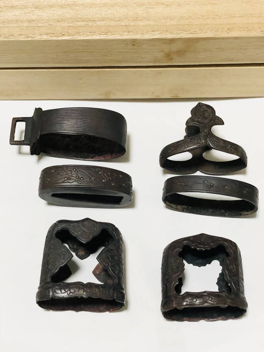 | 【希少高級太刀金具6点!金象嵌旧家蔵出し品】室町時代~江戸時代/最上級武具刀装具/箱付【柳生の里より蔵出し品】売切1円スタート |