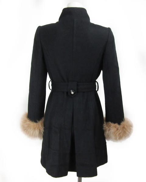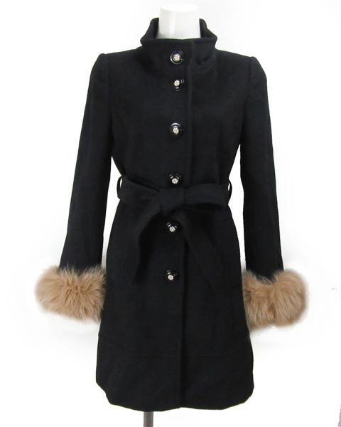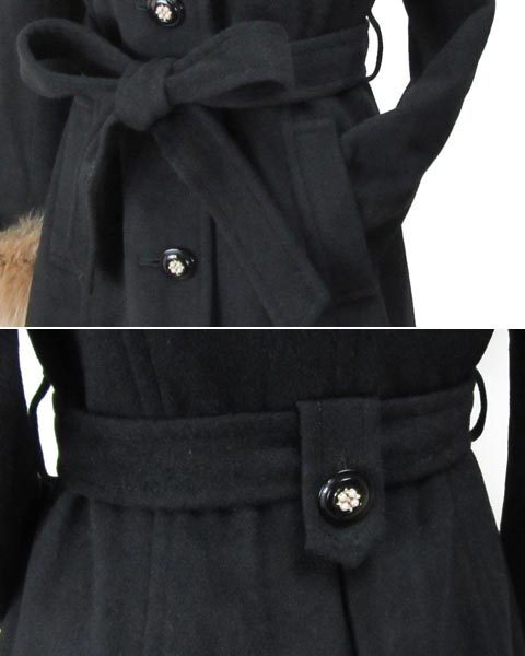 | 上品できれいコーデが楽しめるコート。お袖のファーは取り外し可能でファーをつなげて、ファーマフラーにして頂くことができます。黒なので、インナーのお色やボトムスのお色を選ばず活躍してくれます。ビジネスシーンからオフの日までお使い頂けます。 |