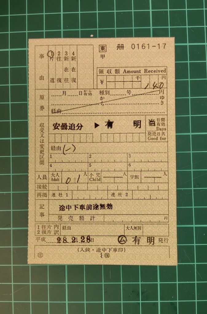 JR東日本 有明駅で発行された出札補充券、安曇追分→有明の乗車券です。未使用品で目立つ折り目や汚れもありませんが、経年による劣化はありますので写真からご確認ください。よろしくお願いします。