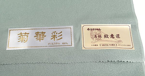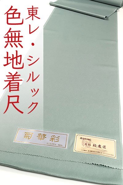 | ◆タイトル◆ | 和遊館 KKK806 東レ シルック 丹後ちりめん 高級 紋意匠 菊華彩 色無地 着尺 洗える着物 菊地紋 青磁色 |