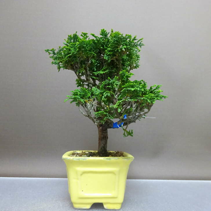 | ■植物ですので撮影時期や季節によって剪定などの手入れにより写真から変化がございます。撮影日をご確認のうえ、ご注文ください。 【津山桧盆栽】 細かく茂った柔らかな葉は落葉せず年間と通して緑を楽しめます。 昭和30年岡山県津山市で発見された八房性の品種で、盆栽向きの人気の品種です。 |