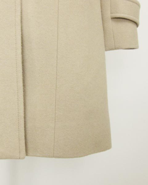 | キュートなデザインのコート♪くるみ釦が女性らしい印象ですよ。優しいベージュカラーがお顔を明るく見せてくれます。スカートでもパンツでも合わせられる絶妙なお丈です。定番デザインなので長い間お使い頂けますよ。 |