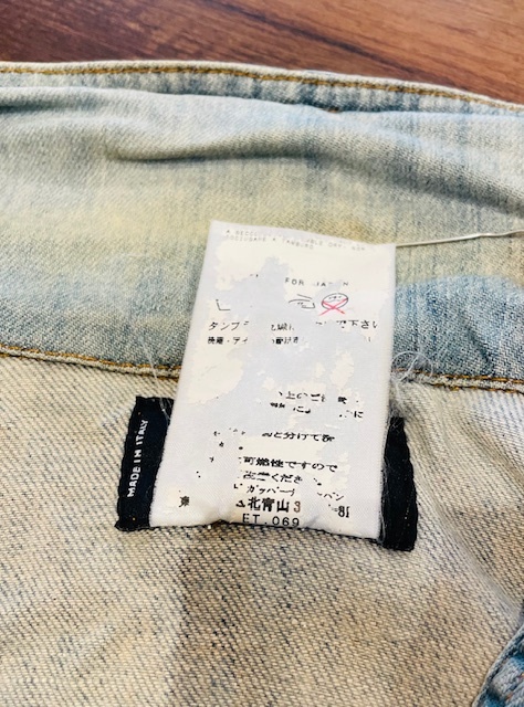 | ブランド名:D&G サイズ:24/38 着丈: 50cm 肩幅: 37cm 身幅: 39cm 袖丈:60cm 色:インディゴ 状態:10段階中6.5程度 素材:コットン系 D&Gのサイドレースアップブリーチ加工デニムジャケットになります! 右肘部分にダメージがあります。 首元など薄い汚れや所々小さい汚れがあります。 内タグが劣化しておりポロポロと剥がれてきております。 状態は当方の感覚になりますので神経質な方はご遠慮ください。 | |||