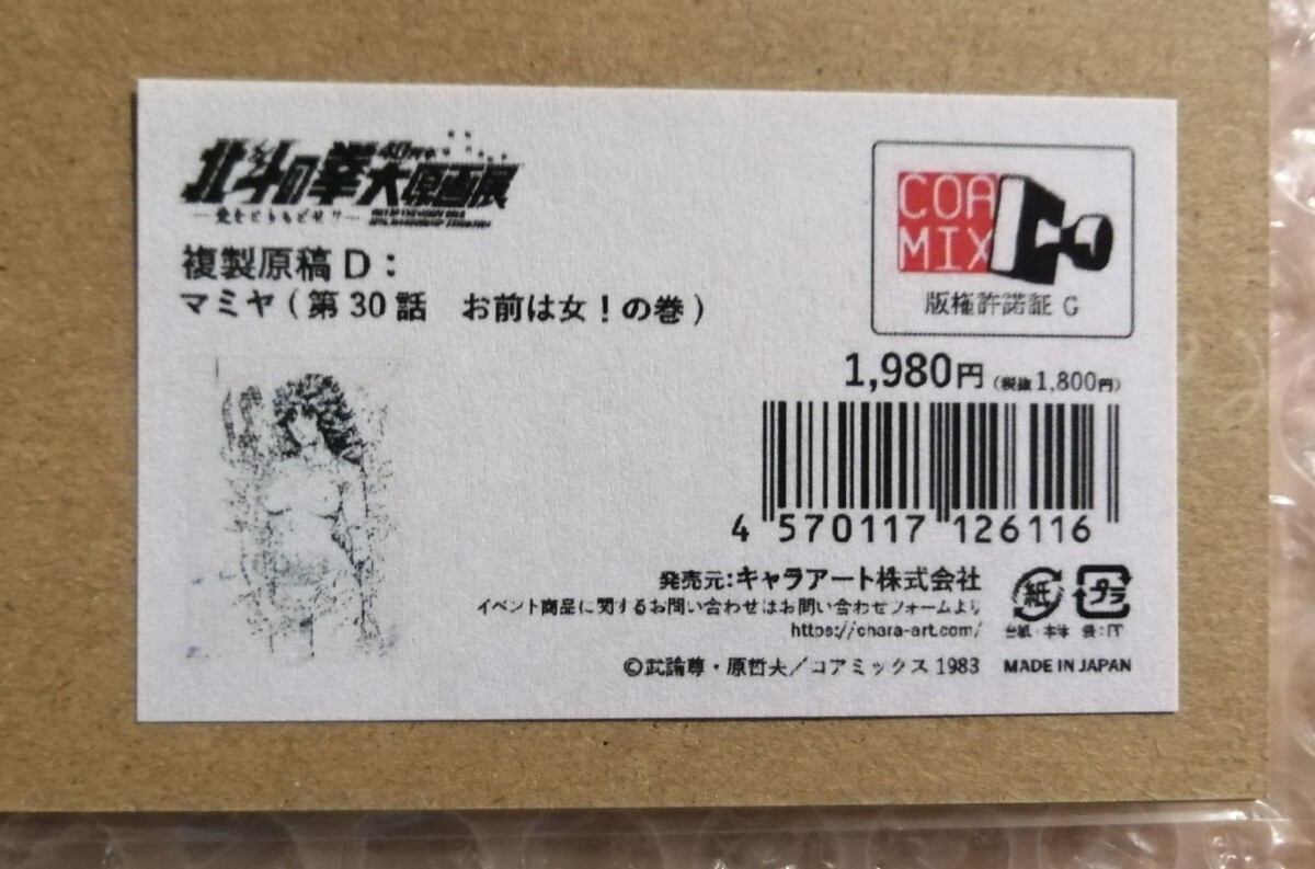 北斗の拳 40周年 大原画展 複製原稿 D: マミヤ 第30話 お前は女!の卷| 出价者 | 信用 | 价格 | 时间 |