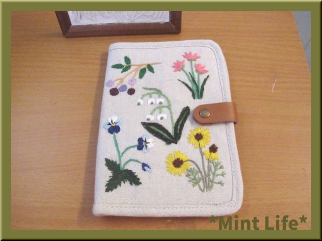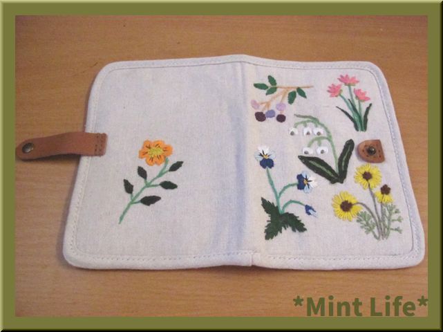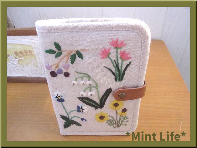 | *Mint Life* ハンドメイド 「リネンマルチケース」お薬手帳&通帳&カード入れ 手刺しゅう | |||