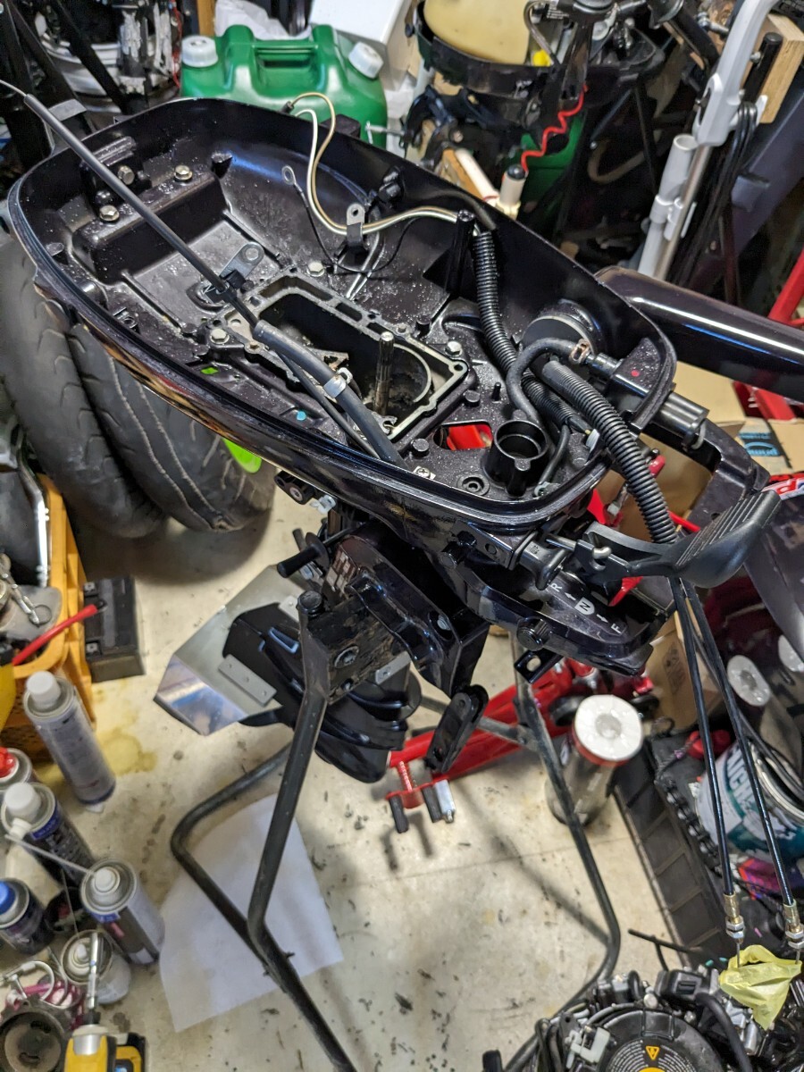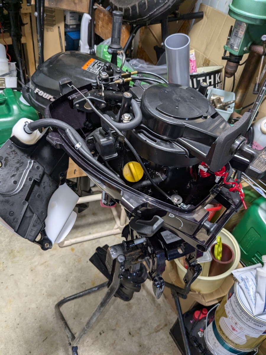 (ハンドルスロットル化・外部タンク仕様・5馬力化・アルミペラ交換・キャビテーションプレート取り付け・イグナイター交換・シフトノブ固着等)