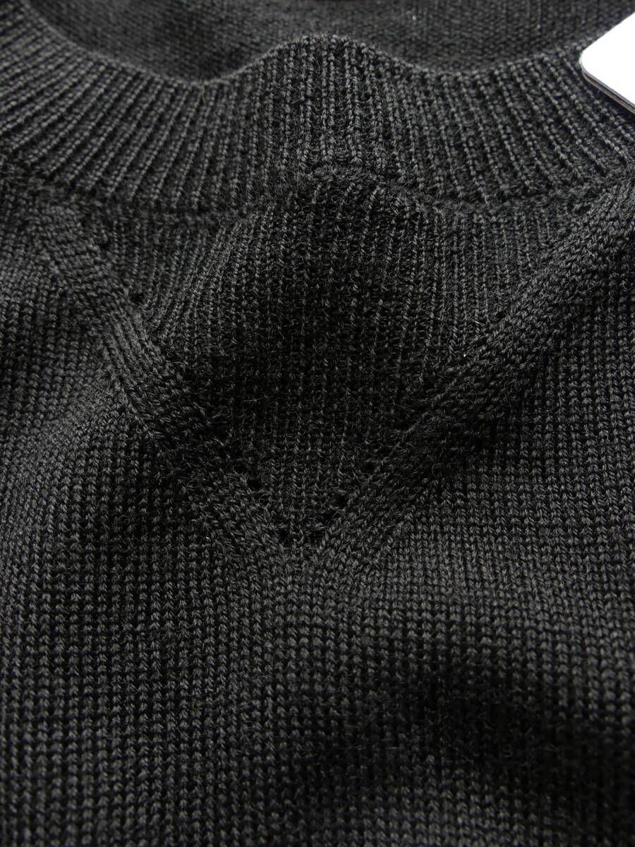 トレーナースタイルのブラックニット。少し軽めのライトオンス寄りニット地でまさにプレフォール物。夏を除いて通年でご着用いただけるお品になります。首元に三角の汗止めがデザインされたトレーナー型スタイル。ボディーサイドには白のロゴテーピングデザイン。手を下ろして直立姿勢では無地で、動くと白いラインがチラ見えします。今どきはディフュージョンブランドのアルマーニ・エクスチェンジすら気が付けば少し高級気味の価格設定。エンポリオは10年前のジョルジオの価格設定になりました。以前はエンポリオがディフュージョンラインと思っていましたが、時代は変わりました。このニットも国内ブティックでは7万円くらいするようです。本当に何でも高いです。このごろは一日に何回「高い」という言葉を使っているのかと思います。こちらのニットを少し調べたところネットショッピングでいくつか販売中のところがありまして、どちらも4万円くらいの販売価格のようです。本当に高級品ですね。うちはきっと「安い」と言っていただける価格で頑張っていますので、ぜひよろしくお願いいたします。