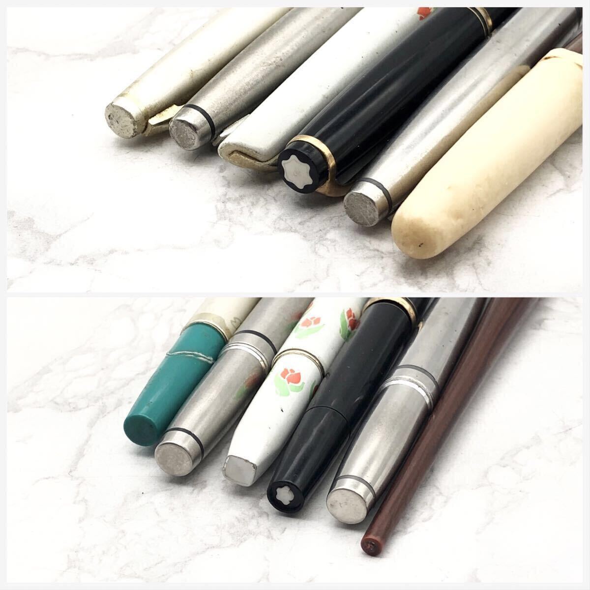 それぞれに年数経過・長期保管による傷や汚れ、サビや変色、塗装の剥がれ、インク汚れ、ワレなどがございます。モンブランのマークにカケがございます。