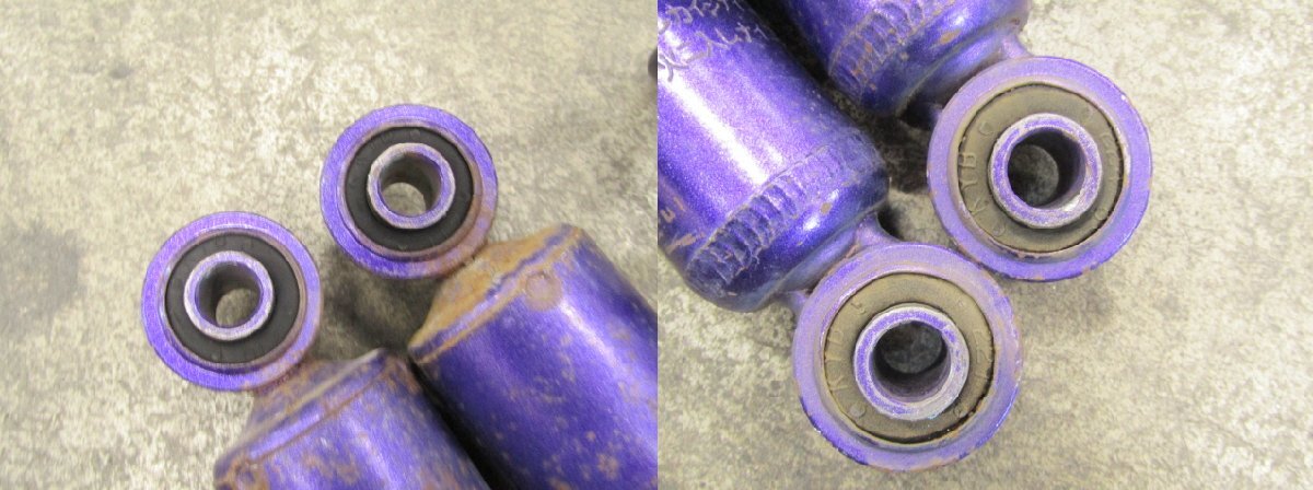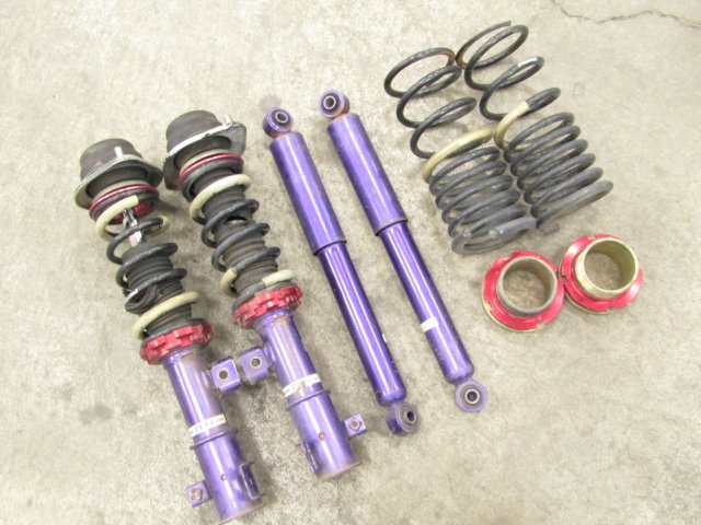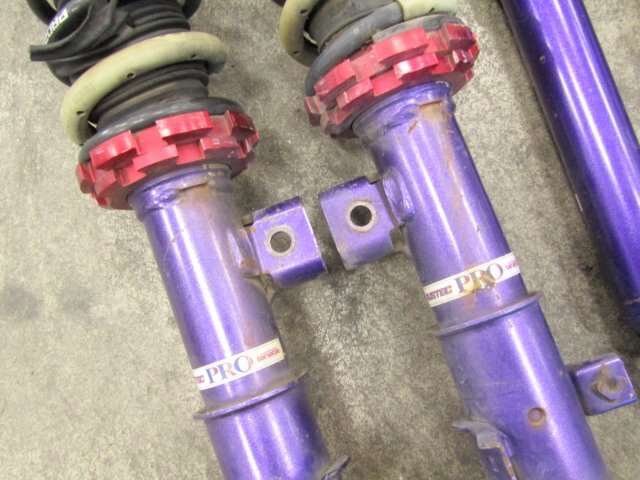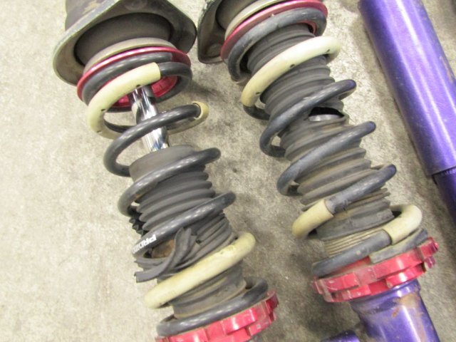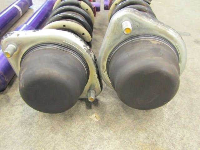 ■タイプ■ ・ネジ式 ・ヘルパースプリング ・バネレート:不明 ■抜けに関して■ ・フロントは、未チェック品になります。 ・目視の限りでは曲がり、オイル漏れはありません。 ・リア:自力で元位置まで戻ります。 ■アッパーマウント■ ・フロント:片方に小がたつきがあります。 ■固着■ ・固着はありません。 ■その他■ ・全体的に錆び、傷、汚れが多数あります。 ・ダストブーツに切れがあります。 ・ブッシュに切れがあります。 ・使用期間、使用距離は不明です。 ・全体的に、傷、錆び、汚れが多数あります。 ●画像に写るものがすべてとなります。 |