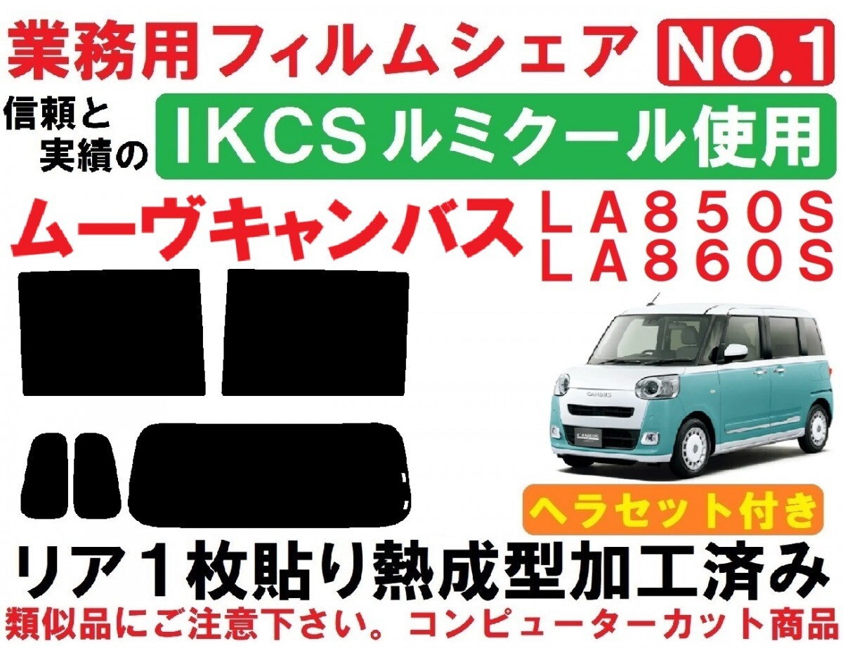 | LA850S LA860S ムーヴキャンバス用『IKCルミクール使用』1枚貼り成型加工済みフィルム リア5面セットです。(専用施工液付属) ・信頼の品質と実績で永い間業務用フィルムとして選ばれ続けているIKCS製品です。 ・業務用フィルムの中で最も信頼性の高い、ベストセラー商品です。 ・詳しくはIKCS株式会社HPをご覧ください。 ※『ルミクール』は当店でも 施工実績・販売実績NO.1の超人気商品です。 令和4年7月~ LA850S LA860S ムーヴキャンバスに適合します。 ハイマウントストップランプ部分の切り抜きも出来ます(画像3) ご落札後、ご指定下さい。 ※適合等 ご不明な点など有りましたら、お気軽にご質問下さい。 ◇◆◇当商品には、画像2のヘラセットが付属します◇◆◇ ■滑りの良いシリコンタイプのゴムヘラ スムーズに水切り(清掃)・貼り付け後の水抜きが出来ます。 実際の業務でも色々な物を試しましたが、シンプルなこの形状・このメーカー・このグレードの物が1番使いやすいです。 柔軟性が有りガラス(フィルム)に密着するため、フィルム折れも防げます。 ■使いやすい厚みとコシの有るプラヘラ 形状は似ていても各メーカーにより硬さ・厚みなど色々と有ります。 慣れていない方でも扱い易いように少々柔らか目の物になります。 ヘラ先にはフッ素樹脂加工のクロスを貼って有りますので、滑りが良くキズを防止します。 ■ワイプオール(不織布ワイパー) 布同様の丈夫さと紙の持つ吸水性を発揮。糸くずの発生が無く均一素材のため異物混入の心配が有りません。 施工前のガラスクリーニング~施工時にフィルムが触れる可能性の有るガラスの周りのゴム部品の拭き取り清掃~吸水等に大変便利です。 全て実際の業務に使用している物で、その中から使いやすい物を選んでいます。 ヘラセットがご不用の場合、フィルムのみの商品も有ります。こちら ◇◆◇精密コンピューターカット◇◆◇ 貼りやすさを最優先に各部のサイズ・形状など微調整し、改良を重ねた独自のデータを製作。 高精度な最新・大型カッティングプロッターによるカットで正確で滑らかなカットラインを再現しています。 ※施工業者だから分かる、貼りやすいサイズ・形状に仕上げています。 ◇◆◇リア1枚貼り成型加工済み◇◆◇ ガラスの形状に合わせて熱成型加工して有りますので、そのままで平面に貼るのと同様にたるみが出ず1枚貼り出来ます。 ※最適な状態に成型加工して有りますので、ヒートガン(ドライヤー)等は不要です。 ◇◆◇専用施工液付属◇◆◇ 軽視されがちな施工液ですが、貼りやすさに大きく関わる部分になります。中性洗剤などで代用せず、必ず付属の専用施工液をご使用下さい。 濃度については車種・季節などにより変わりますので、個別にお知らせ致します。 ■ 国内シェアNO.1の『IKCSルミクール』を使用しています。■ ルミクールは経年退色が極めて少ない着色加工技術はもちろん、安定した冷暖房効率をアップする熱線遮断効果や断熱効果、内装を守り日焼けを防ぐため、全てのフィルムで99%の紫外線カットを実現しています。 ガラスの飛散防止効果で高い安全性を保ち、ハードコートタイプなのでキズにも強いカーフィルムです。 信頼の品質と性能で、永い間業務用フィルムとして選ばれ続けています。 ■フィルムの種類■ 可視光線透過率 3% NS-003HC 可視光線透過率 7% NS-008HC 可視光線透過率13% NS-015HC 可視光線透過率20% NS-020HC 可視光線透過率30% NS-030HC 可視光線透過率46% NS-045HC ■全商品、キズに強いハードコート・紫外線(UV)99%カットです。 ※可視光線透過率が低くなるほどフィルムの色は濃くなります。 サイドとリアで濃さを替えたり等、可能です。 部分的にフィルムが必要になった場合、単品販売も承ります。 他にもムーヴキャンバス用フィルム、各種出品中です。こちらもご覧ください。 ご不明な点など有りましたら、お気軽にご質問下さい。 | ||