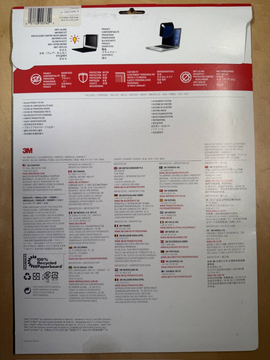 | ■商品説明■ | 3M (スリーエム) の 15 インチ Macbook Pro 向けのプライバシーフィルター (スクリーンフィルター)PFNAP008 です。 過去利用していた端末で利用する目的で自宅で保管しておりましたが、利用する機会がないまま機種変更となりサイズがあう端末が手元にない状況となったため、活用頂ける方がいらっしゃればと思い出品致します。 保管するなかでパッケージは経年劣化している部分はあるかと思いますが、中身については未使用・未開封のものになります。 コワーキングスペースやカフェなどで作業をする場合の情報の保護の観点でご利用になることができるかと思います。 発送について 同程度の大きさに段ボールをカットしたうえで挟んだ状態でガムテープでとめて発送させていただく予定です。 |
