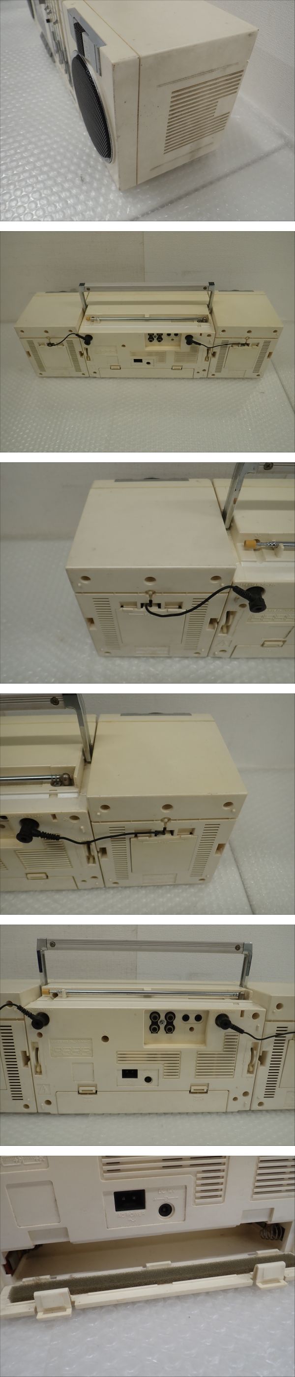 通電、ラジオ受信、スピーカー音出し確認済みです。カセットテープは再生、早送り、巻き戻し、動作不可です。