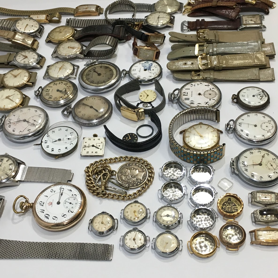 ■【買取まねきや】時計 ジャンク 懐中時計 ラドー セイコー シチズン パーツ ベルト 文字盤 他 総重量 約1556.0g ■ |