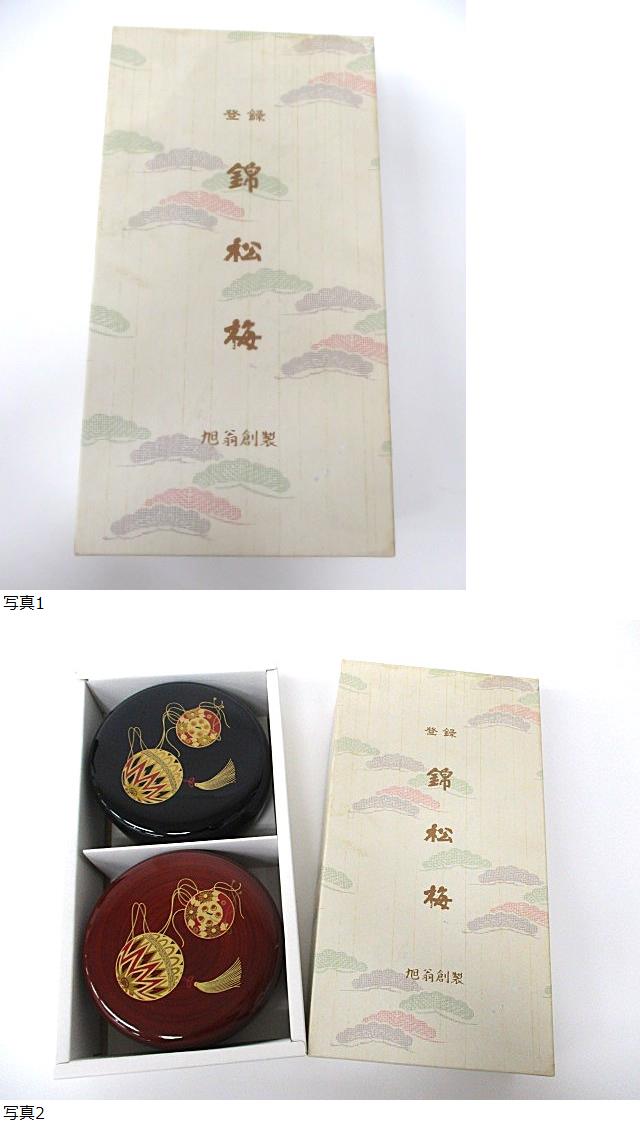 | 【1-130】 錦松梅 旭翁創製 会津塗 蓋付き小鉢 2個セット 菓子器 小物入れ 容器 工芸品 自宅保管品 | ||