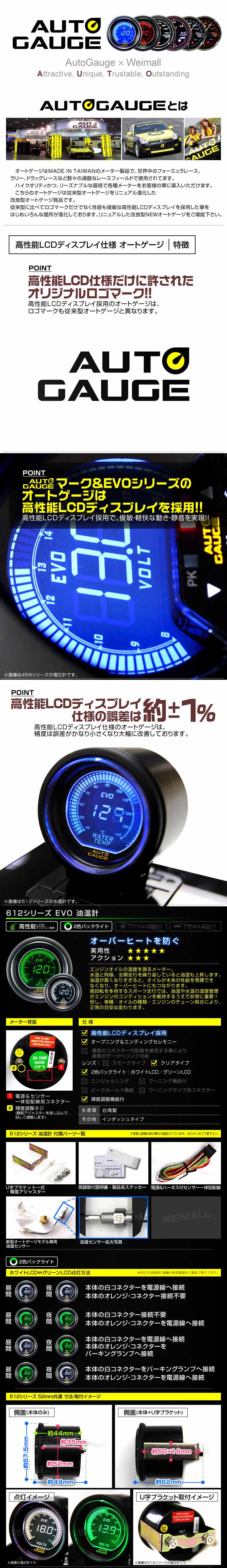 アナタの車をスタイリッシュにドレスアップ! 外装以上に内部をオシャレにしたい! そんな方への定番アイテムです。 LCDディスプレーで鮮やかな動き! 画面は液晶ディスプレイで「ホワイト」「グリーン」表示が可能! ■商品コード:612OT ■商品仕様 メーター径52mm 2色バックライト:ホワイトLCD/グリーンLCD ※インダッシュ・タイプ ■内容 英語版取扱説明書 センサー 電源コード&センサーコードの一体型配線 U字ブラケット ■注意事項 ・現行のほとんどの車種に対応いたしますが、非対応の車種もございます。 対応車種につきましては、ご自身でお確かめ頂けますようお願い致します。 ・商品到着後、必ず取付前に商品内容/通電チェックをお願い致します。 ・弊社は販売店のため、取付等に関するご質問にはお答え致しかねます。 ・万が一、取り付け完了後に商品不具合が発生した場合、 取り外しの工賃や作業費等につきましては全てお客様のご負担となります。 ■保障期間 7日間 ※商品到着後7日以内の初期不良・破損のみご対応させていただきます。 【新品未使用品です】 |