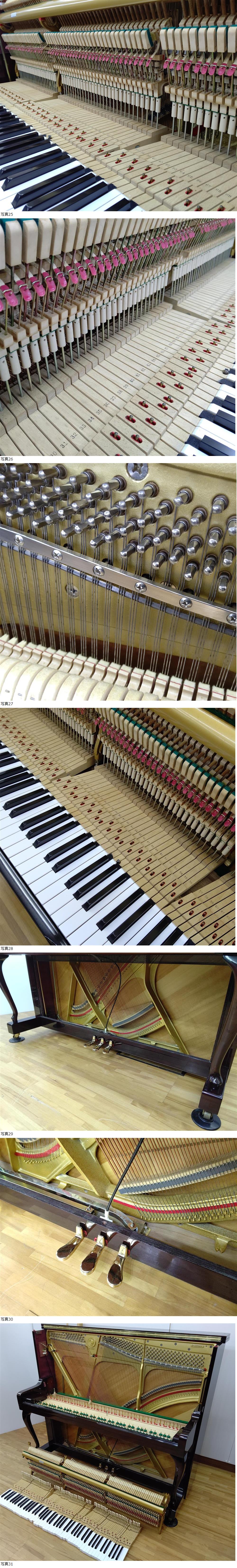 | ヤマハ・カワイにならぶ歴史あるピアノメーカー「ディアパソンピアノ」です。外装は各パーツの仕上げに細部にわたって手が込んでいて、重厚ながらスタイリッシュで猫脚の美しい曲線などとても上品なピアノに仕上がっています。塗色はダークマホガニー仕上げですが、照明と角度によって濃いワインレッドにも見えます。 ※色味は出来るだけたくさんの画像でご確認ください。 ピアノ内部には必要な整調作業を施しました、タッチ・音色とも良い状態に仕上がっています。低音から中高域までバランス良く鳴ります。落ち着いた温かみを持ちながら芯のあるメリハリの利いた音色です。 【少々訳あり】他出品の再生完成ピアノに比べ、内部の見栄えに見劣りを感じます。音色・タッチなど性能には影響はなく、外装もきれいなのですが、当方のこだわりで価格を下げています。こだわらない方にはお買い得かと思います。 (注1)鍵盤蓋上面に小さい打痕が数か所あります(画像39参照)他にも凝視すると僅かなスレなど見つかることもあります。あくまでも中古商品ゆえ、くれぐれも完璧を求められる方のご購入はご遠慮ください。 (注2)オークションにご参加の方は、事前に齟齬を防止するため【商品説明】から下段の【注意事項】まで熟読の上ご入札ください。 | ||