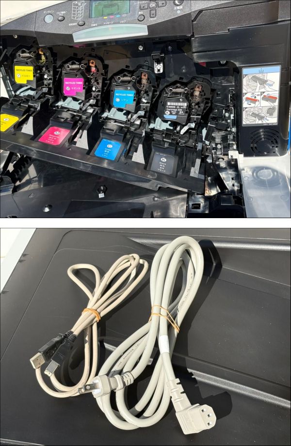 | 【製品情報】 メーカー:Canon / キヤノン 商品名:A3カラーレーザープリンター 型番:LBP841C サイズ:545×591×361mm、重量約34kg 給紙ユニット3段+台車使用時(約)幅555mm×奥行600mm×高さ840mm 印刷機能:ネットワーク印刷 自動両面印刷 モノクロ/カラー:カラー 最大用紙サイズ:A3 インターフェイス:USB 有線LAN プリンター、複合機機能:自動電源オフ 液晶モニタ 色:ホワイト系 メーカー商品ページはこちら 【付属品】 ・純正トナー(残量 C 80%/M 80%/Y 80%/BLK 50%) ・USBケーブル ・電源ケーブル ・純正 550枚給紙ユニット FL3-3711×3段 ・純正台車(ストッパー付き) 【商品説明】 ★カウンター数 カラー:3710枚 / 白黒:46037枚 ★純正トナーが装着されており、残量もまだまだございます。 ★オプションの給紙ユニット3段付きですので、給紙は全4段+手差しが使用できて最大2000枚の多段給紙ができます。 ★オプションの純正キャスター台車も付いておりますので、室内でも移動が楽にできます。 先日まで会社で普通に使用されていたものです。 当方にて以下の基本動作確認済みです。 ・コピー(白黒/カラー) ・自動給紙(給紙ユニット全4段+手差し) ・PCと接続して印刷 ※専門店ではございませんので、印刷の品質等の詳細までは判断いたしかねますので、写真を参考にご判断お願いします。 現状品となりますので、メンテナンスやクリーニング等必要でしたら、ご自身でご対応お願いします。 中古の精密機器につき、保証等はできませんので予めご了承ください。 外観には多少の使用感はございますが、大きなダメージはなく全体的に綺麗な方だと思います。 発送はアートセッティングデリバリー「Cランク」になります。 送料は地域によって異なりますので、ご質問でお問い合わせいただくか、こちらからお調べください。 ★大変お得な状態だと思いますので、是非この機会をお見逃しなく★ | |||